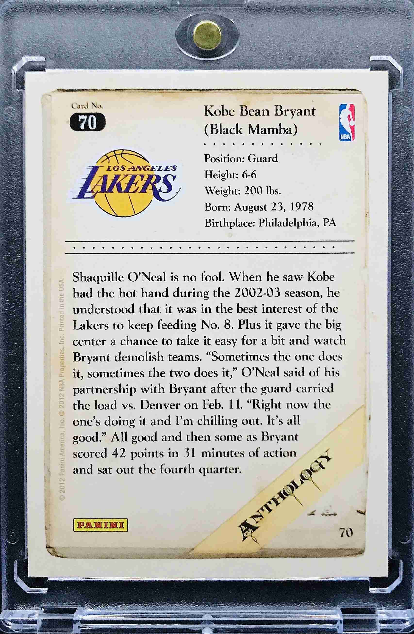 KOBE BRYANT - 2012-13 Panini Kobe Anthology #70 - LAKERS