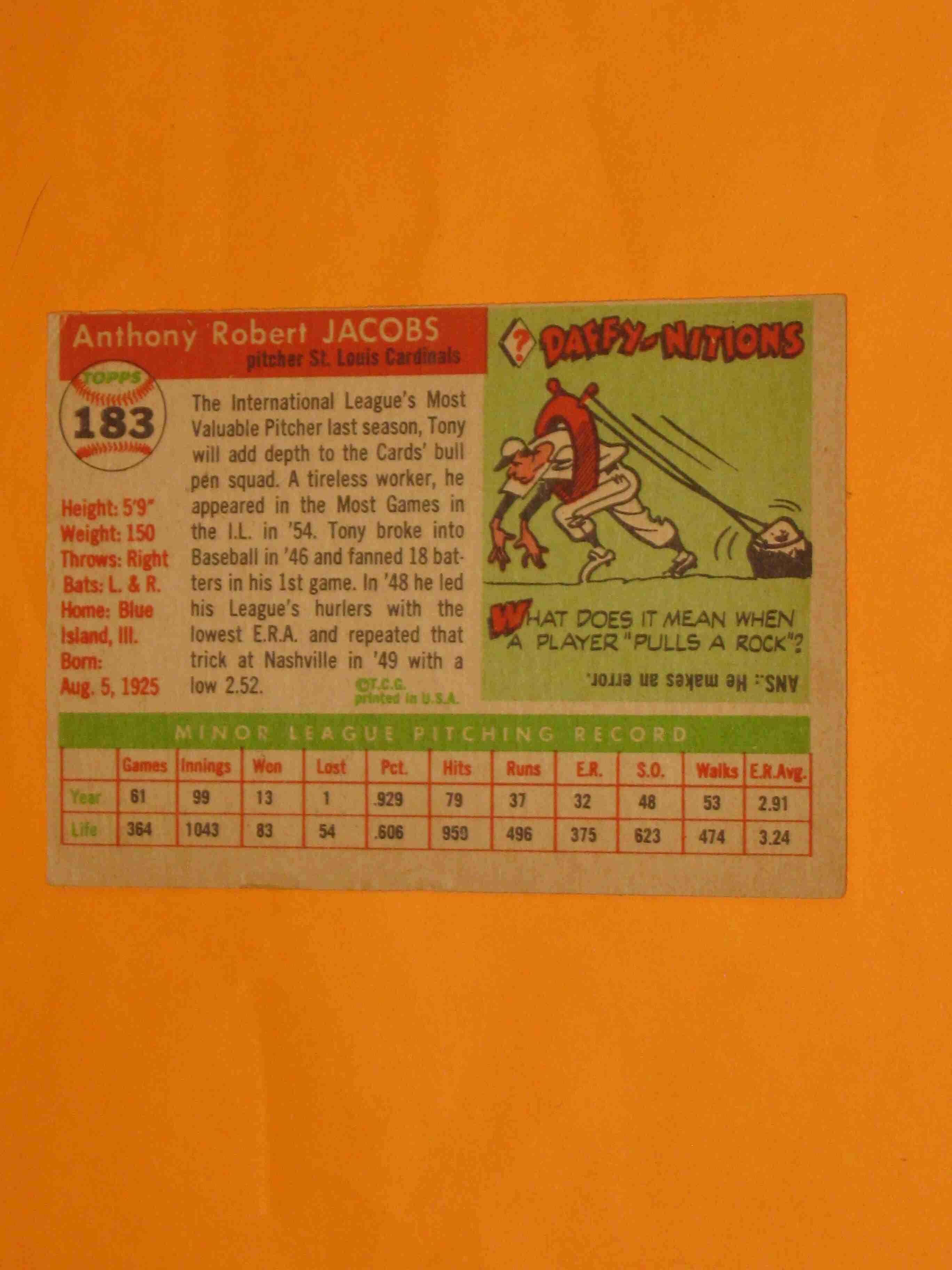 1955 Topps Tony Jacobs #183 St Louis Cardinals