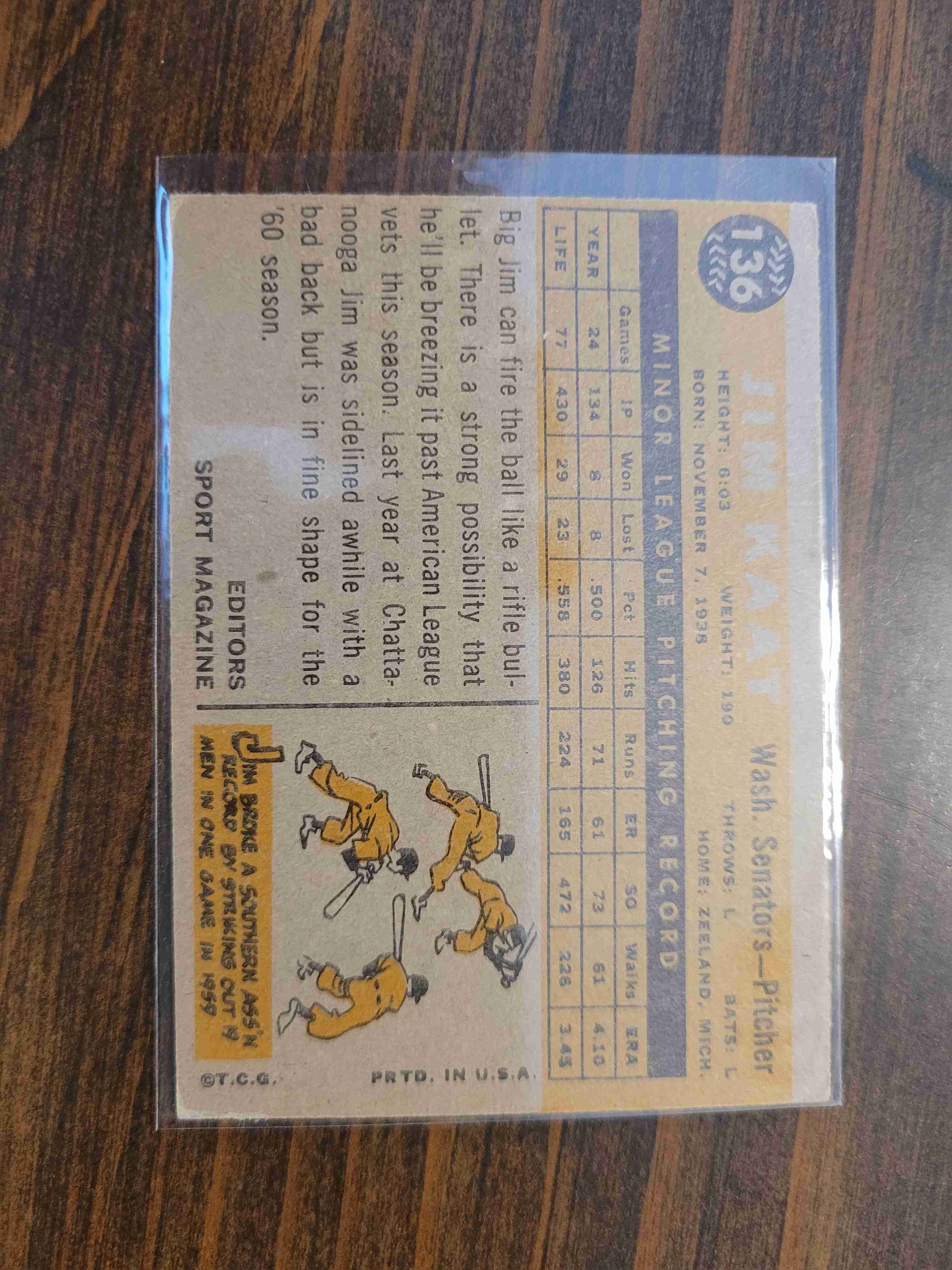 1960 TOPPS JIM KAAT #136 ROOKIE