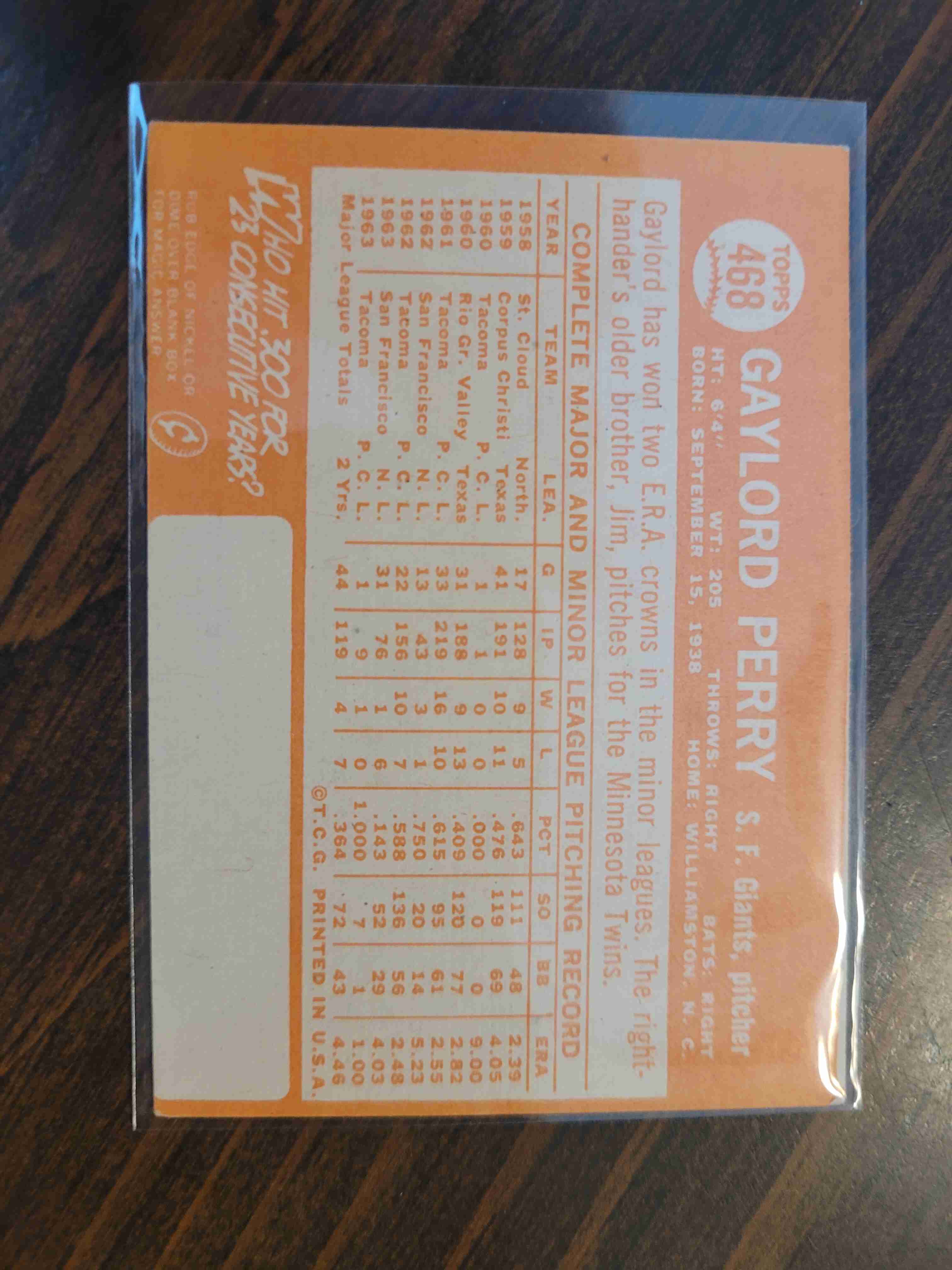 1964 TOPPS GAYLORD PERRY #468 SEMI HI #