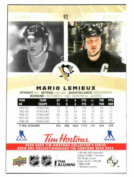 Mario Lemieux #92 2024 Upper Deck Tim Horton's Retrospectiv