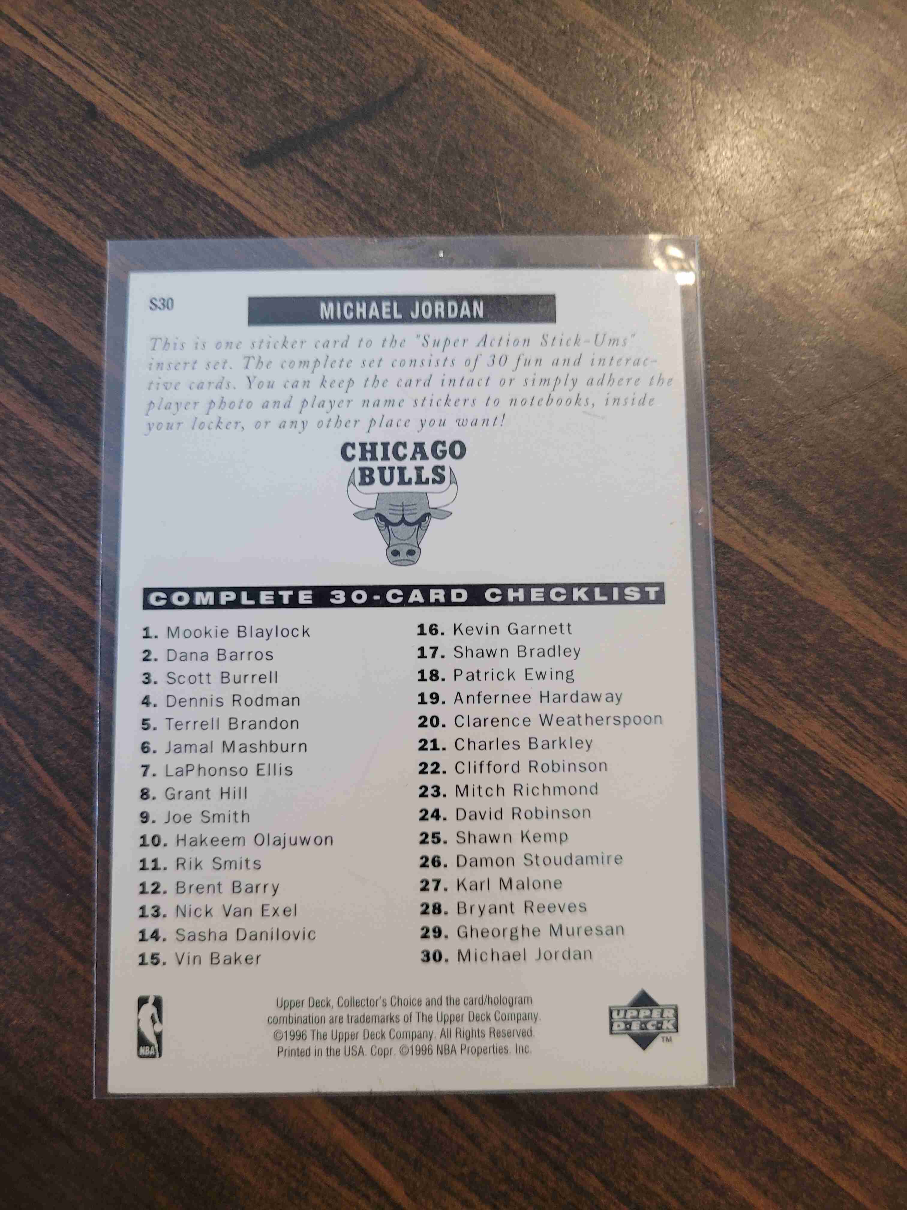 1996 UD COLLECTORS CHOICE STICKER MICHAEL JORDAN #S30