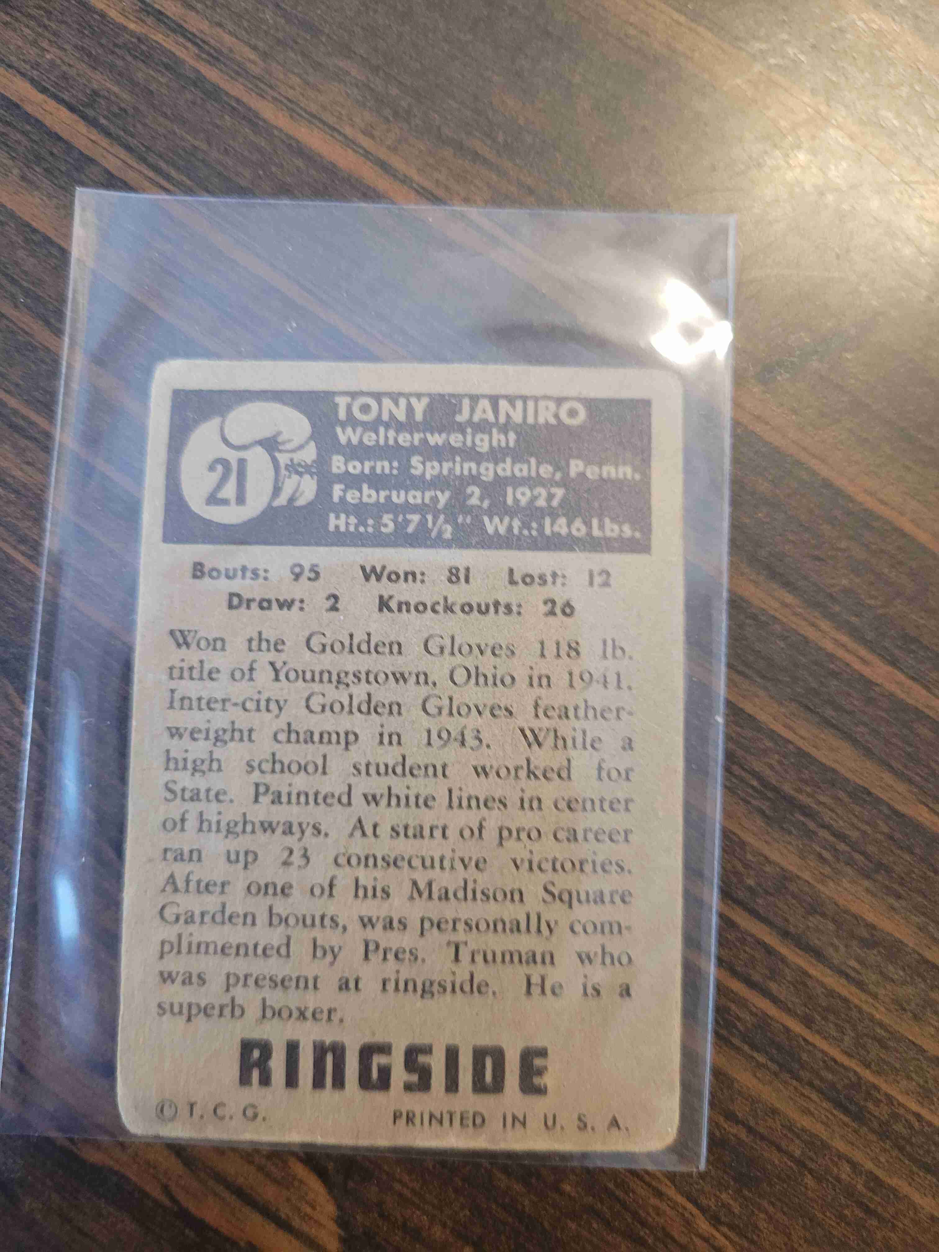 1951 TOPPS RINGSIDE TONY JANIRO #21