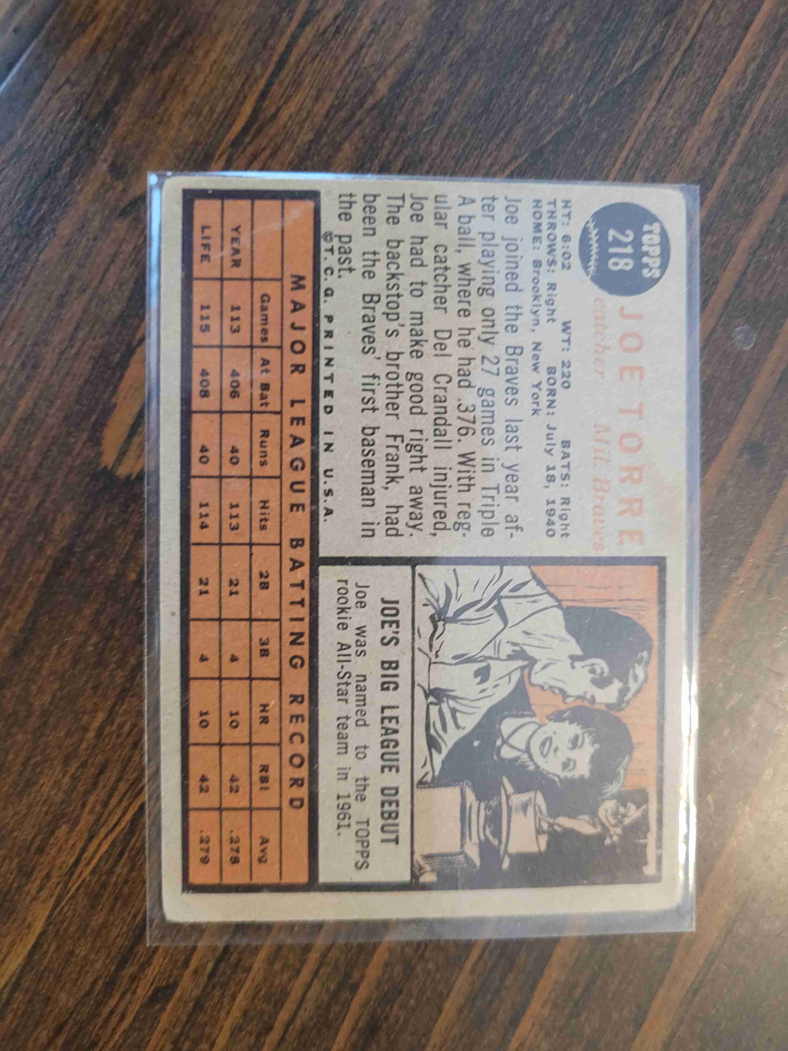 1962 TOPPS JOE TORRE #218 ROOKIE