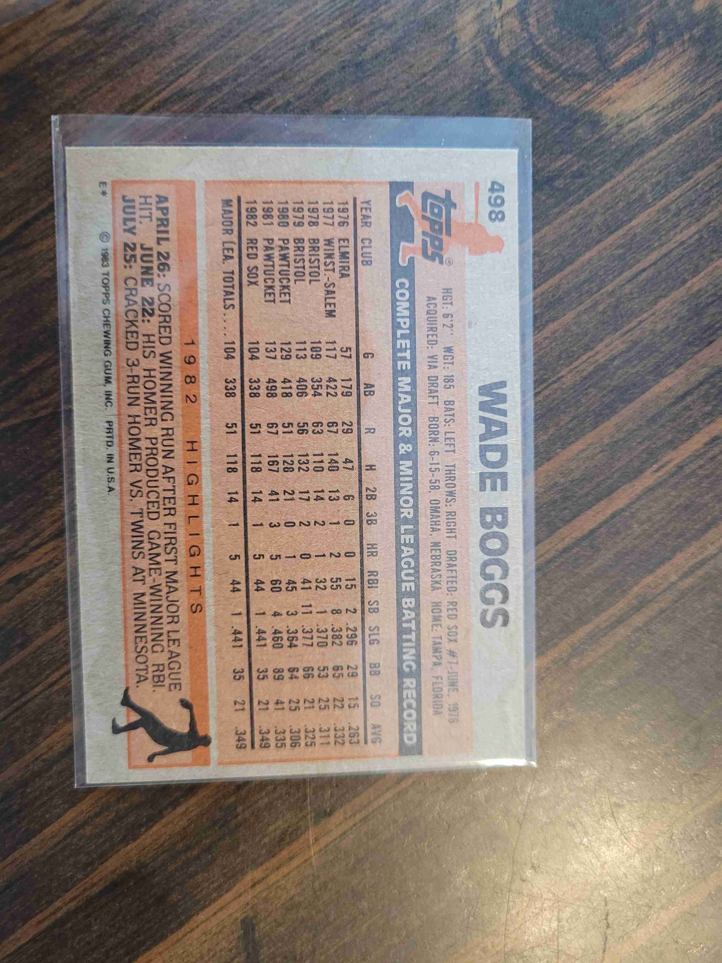 1983 TOPPS WWADE BOGGS #498 ROOKIE