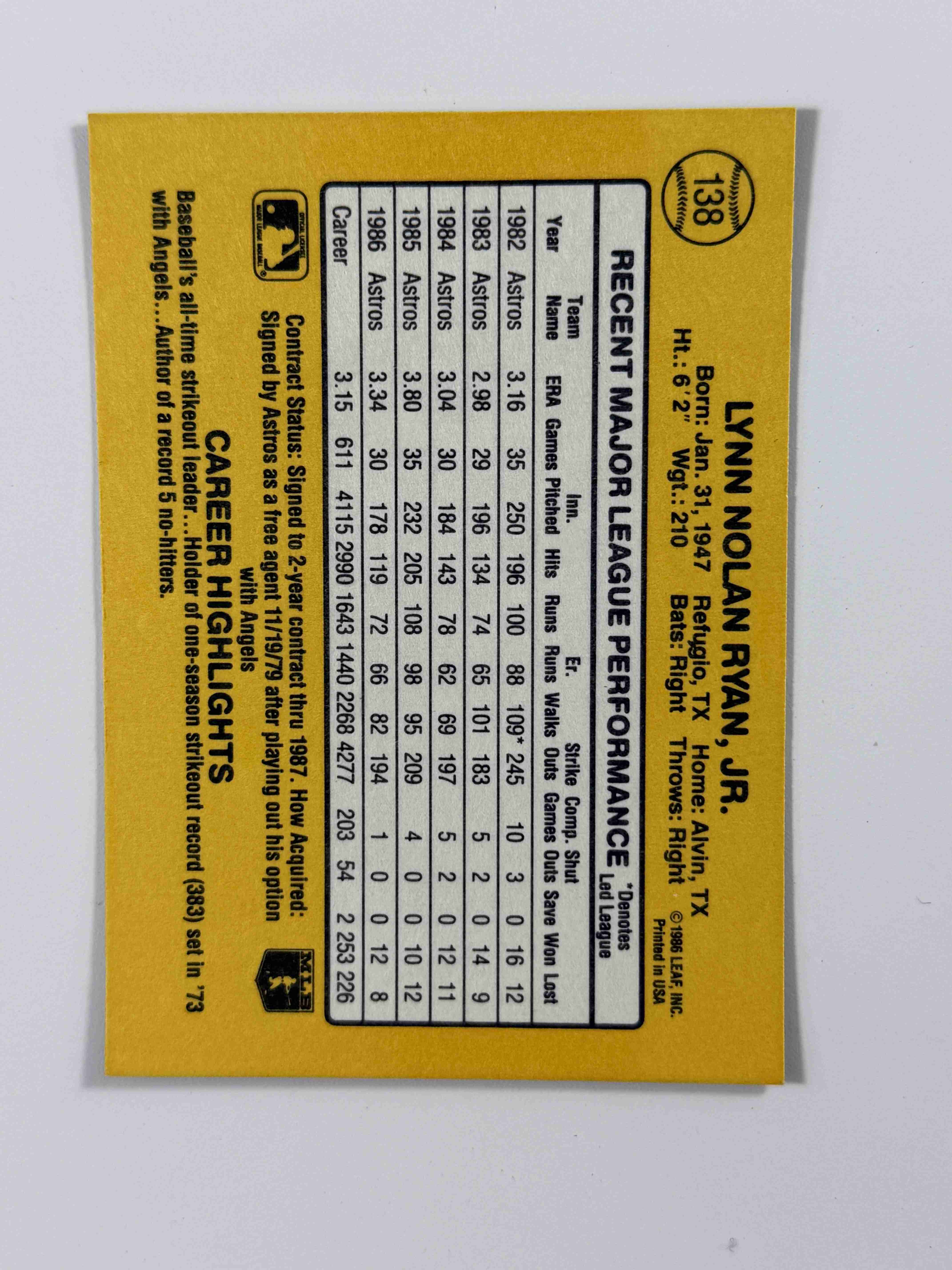 1987 Donruss #138 Nolan Ryan Astros MINT!