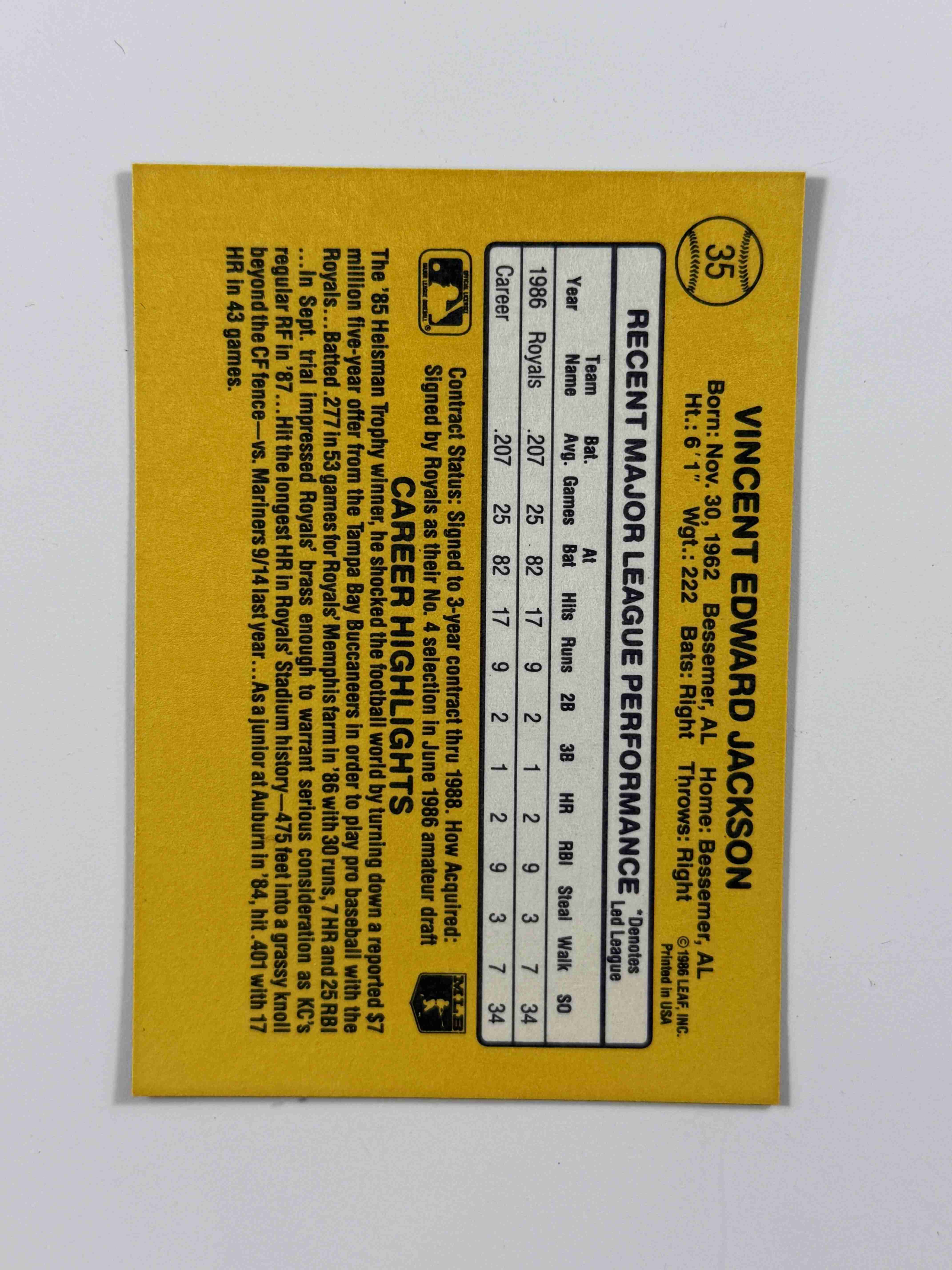 1987 Donruss #35 Bo Jackson RC R0yals MINT