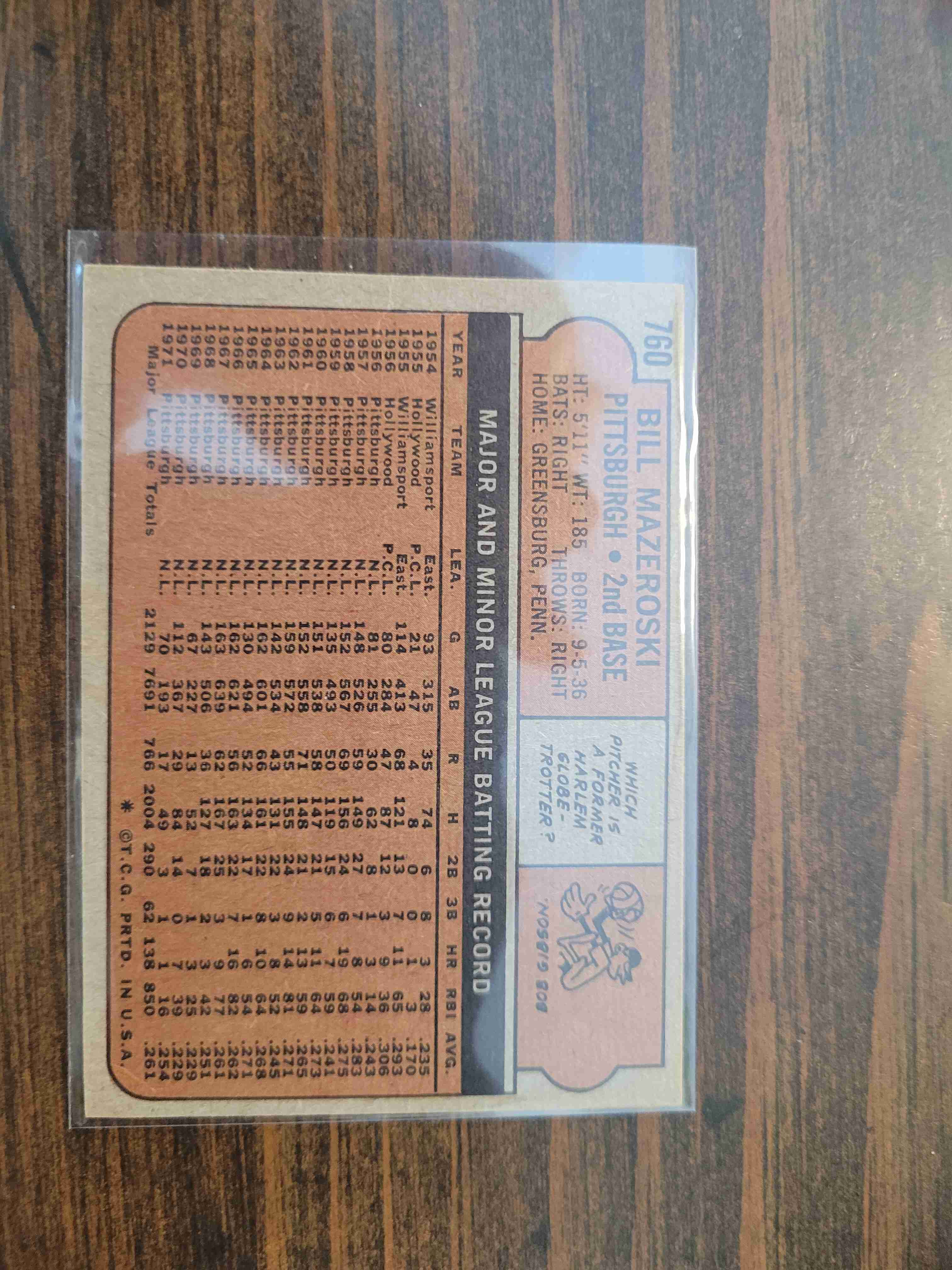 1972 TOPPS BILL MAZEROSKI #760 HI #