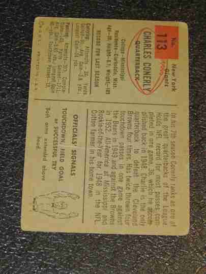 1954 Bowman #113 Charley Conerly - VG - BV $30