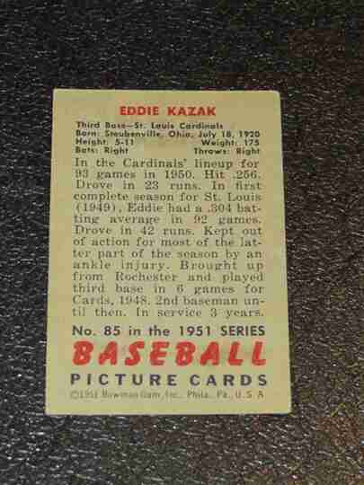 1951 Bowman #85 Eddie Kazak - VG/VG+ -- BV $25
