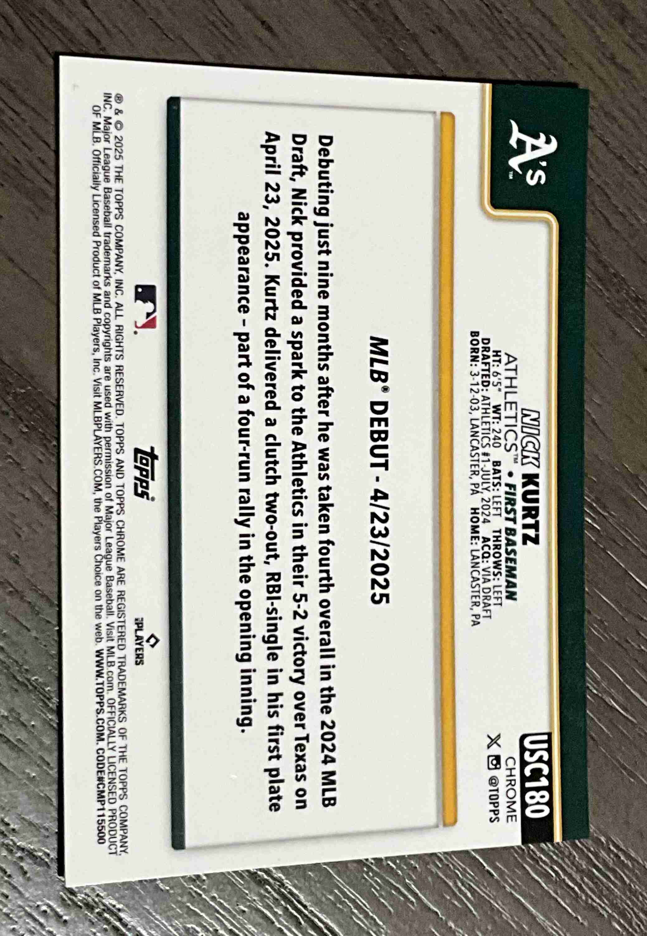 Nick Kurtz Rookie 2025 Topps Chrome Update # USC180