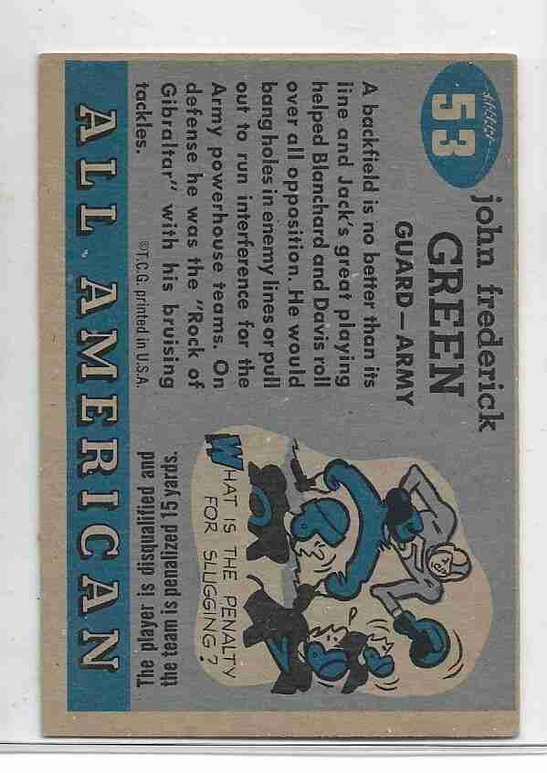 1955 Topps All-American #53 ~ Jack Green Army Black Knights