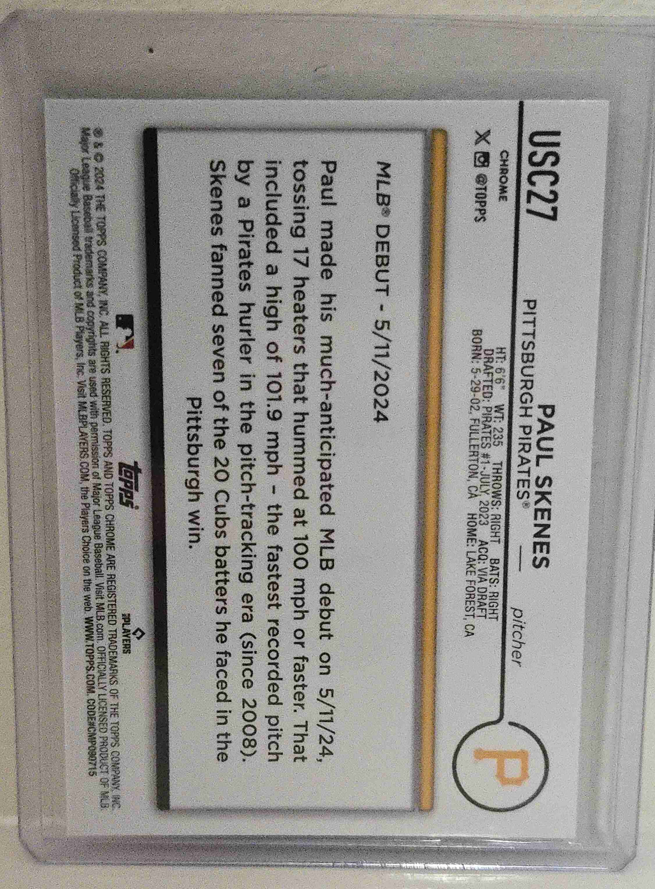 2024 Topps Chrome Update PAUL SKENES USC27 RC