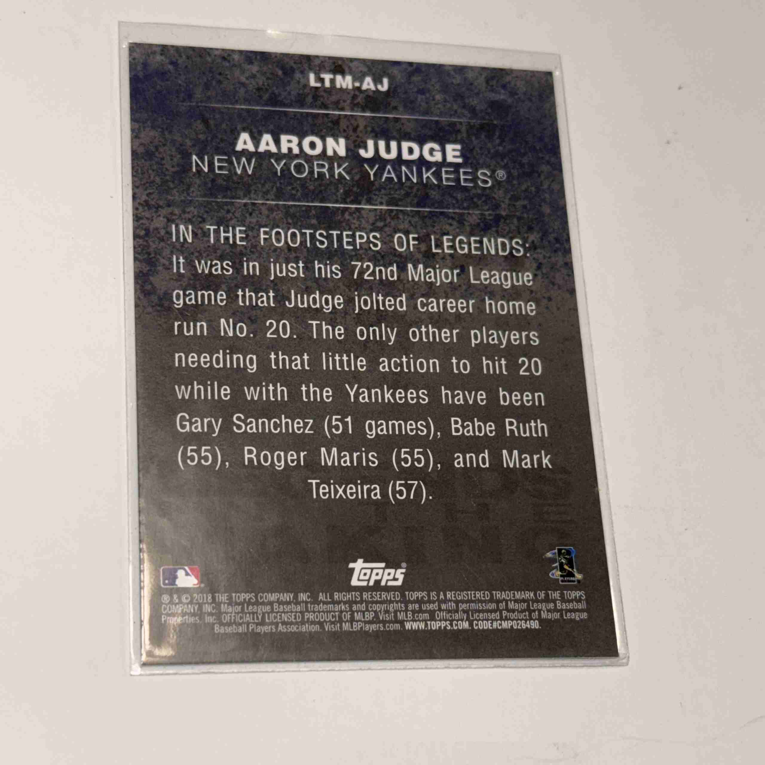2018 Topps Legends in the Making Aaron Judge #LTM-AJ Blue
