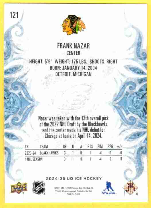 Frank Nazar #121 2024 Upper Deck Ice RC