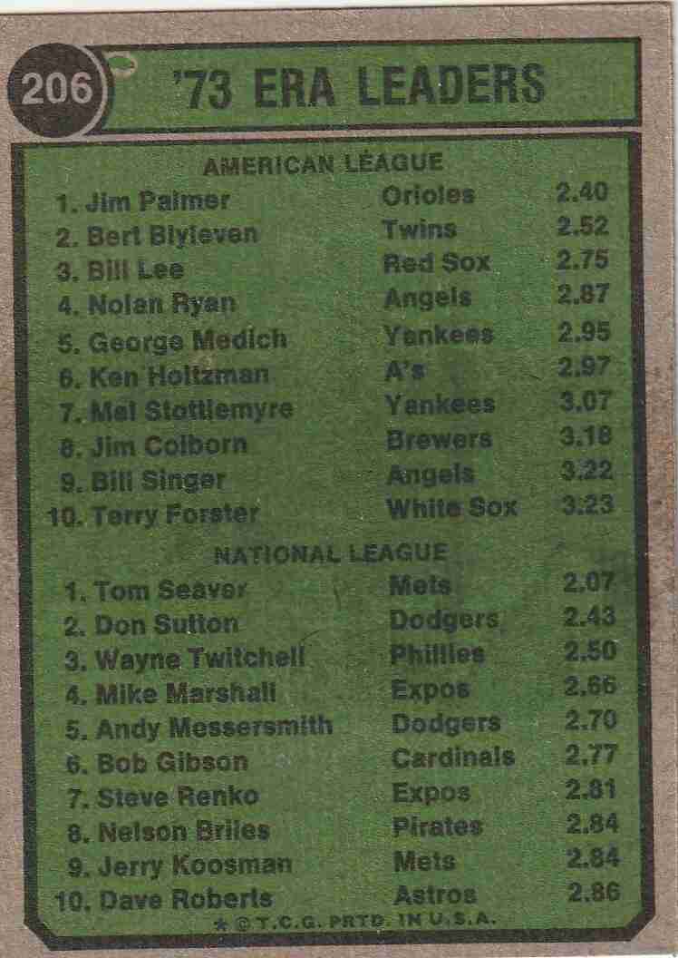 1974 Topps #206 '73 ERA Leaders Palmer Seaver