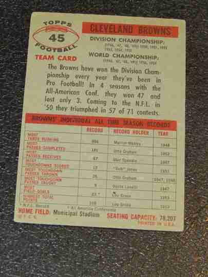 1956 Topps #45 Cleveland Browns TC - F/G - BV $18
