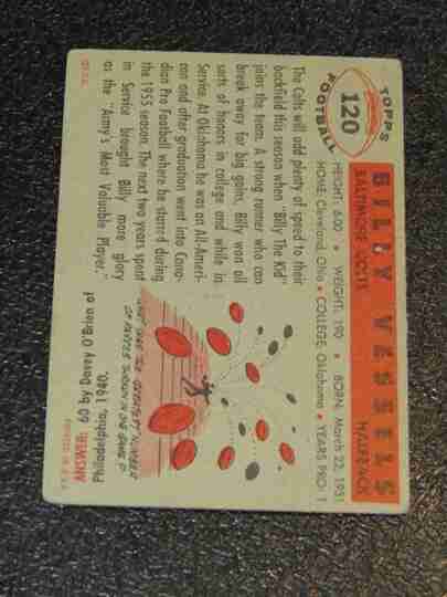 1956 Topps #120 Billy Vessels RC - F/G- BV $40