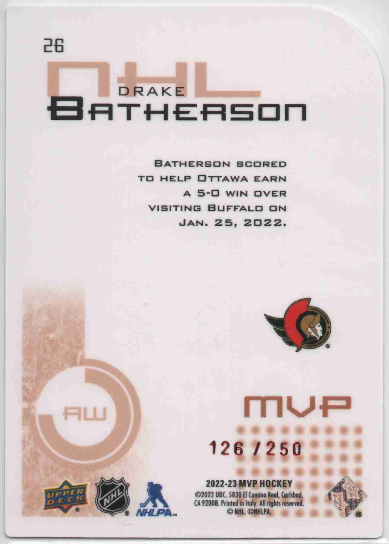 Drake Batherson 2022/23 UD MVP Colors & Contours 126/250