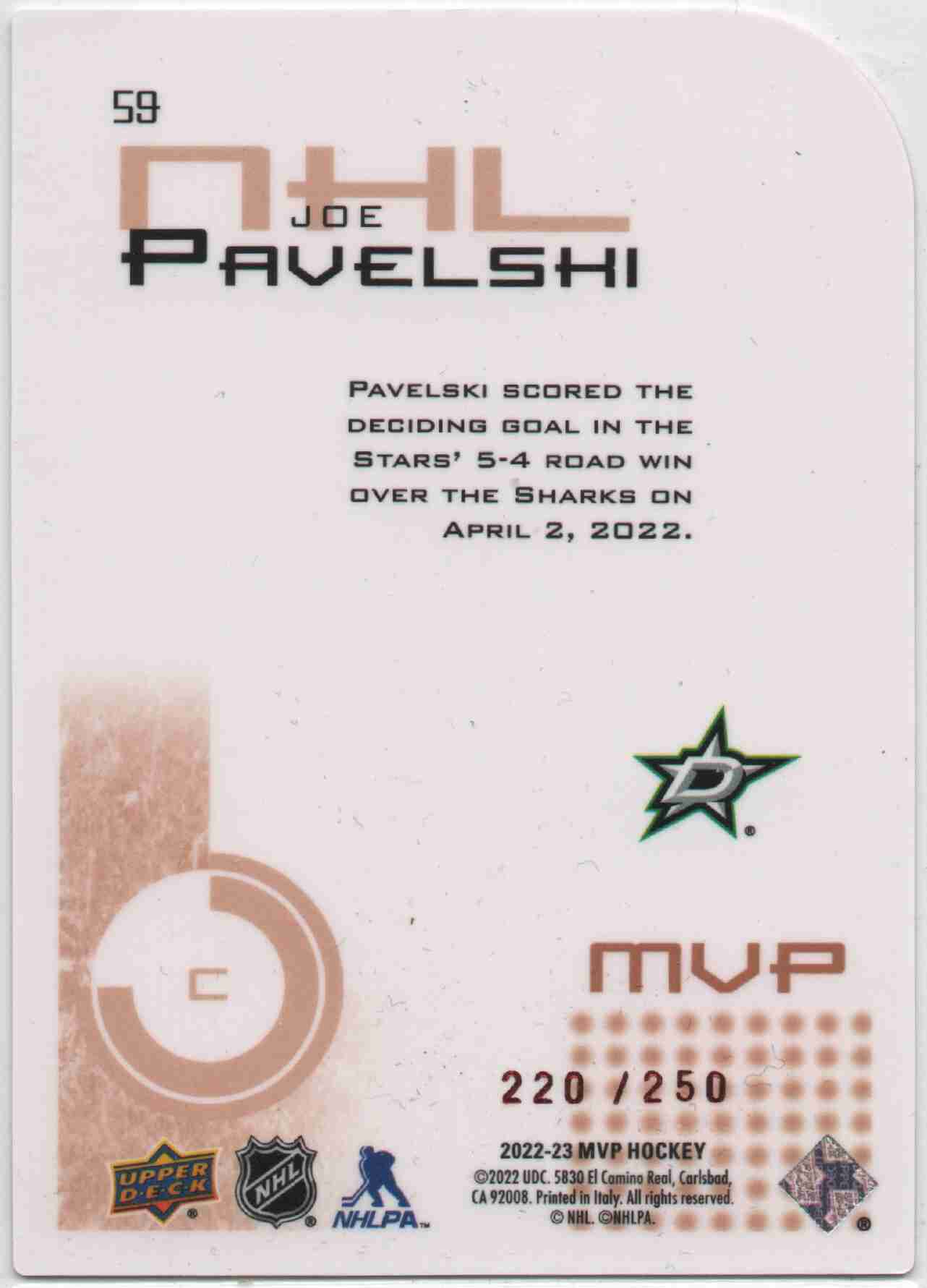 Joe Pavelski 2022/23 UD MVP Colors & Contours 220/250