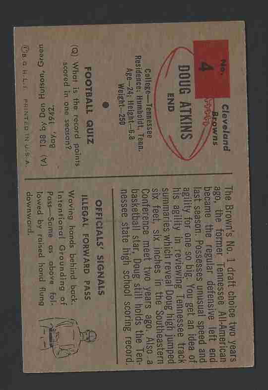 1954 Bowman Doug Atkins (RC-HOF) -#4- Browns