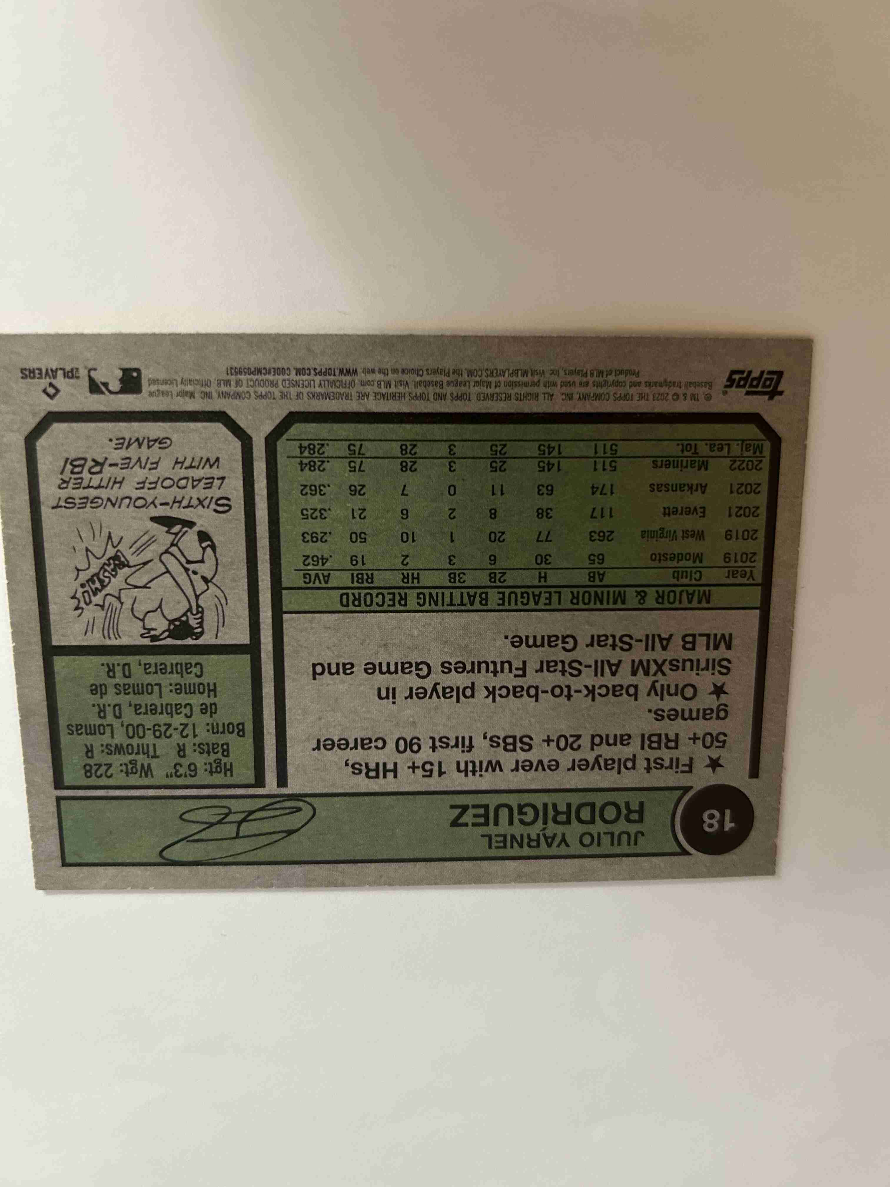 The item in this auction is a 2023 Topps Heritage #18 Julio Rodriguez Gold Cup All Star Rookie.