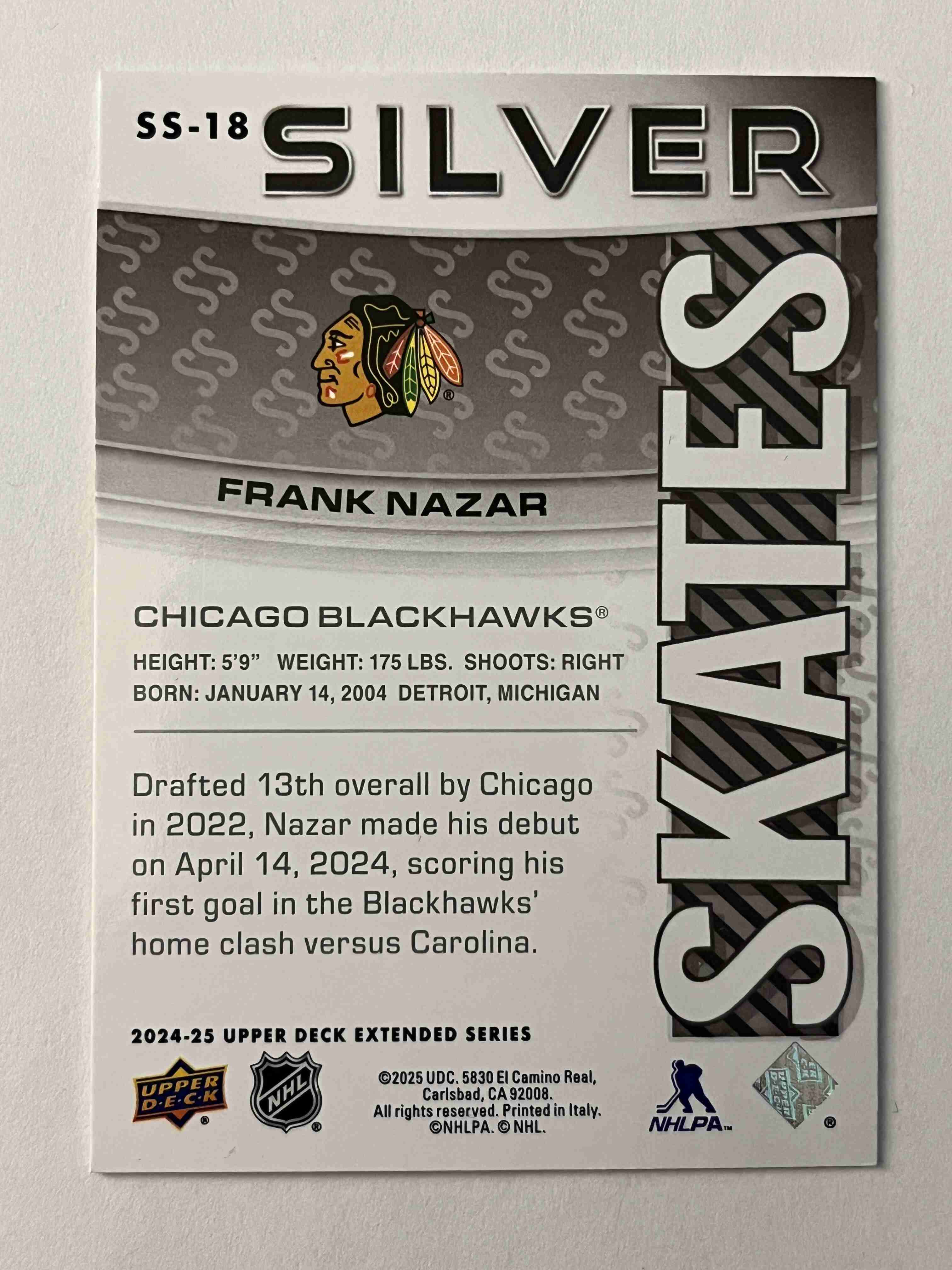 Frank Nazar 2024-25 UD Extended Silver Skates RC #SS-18