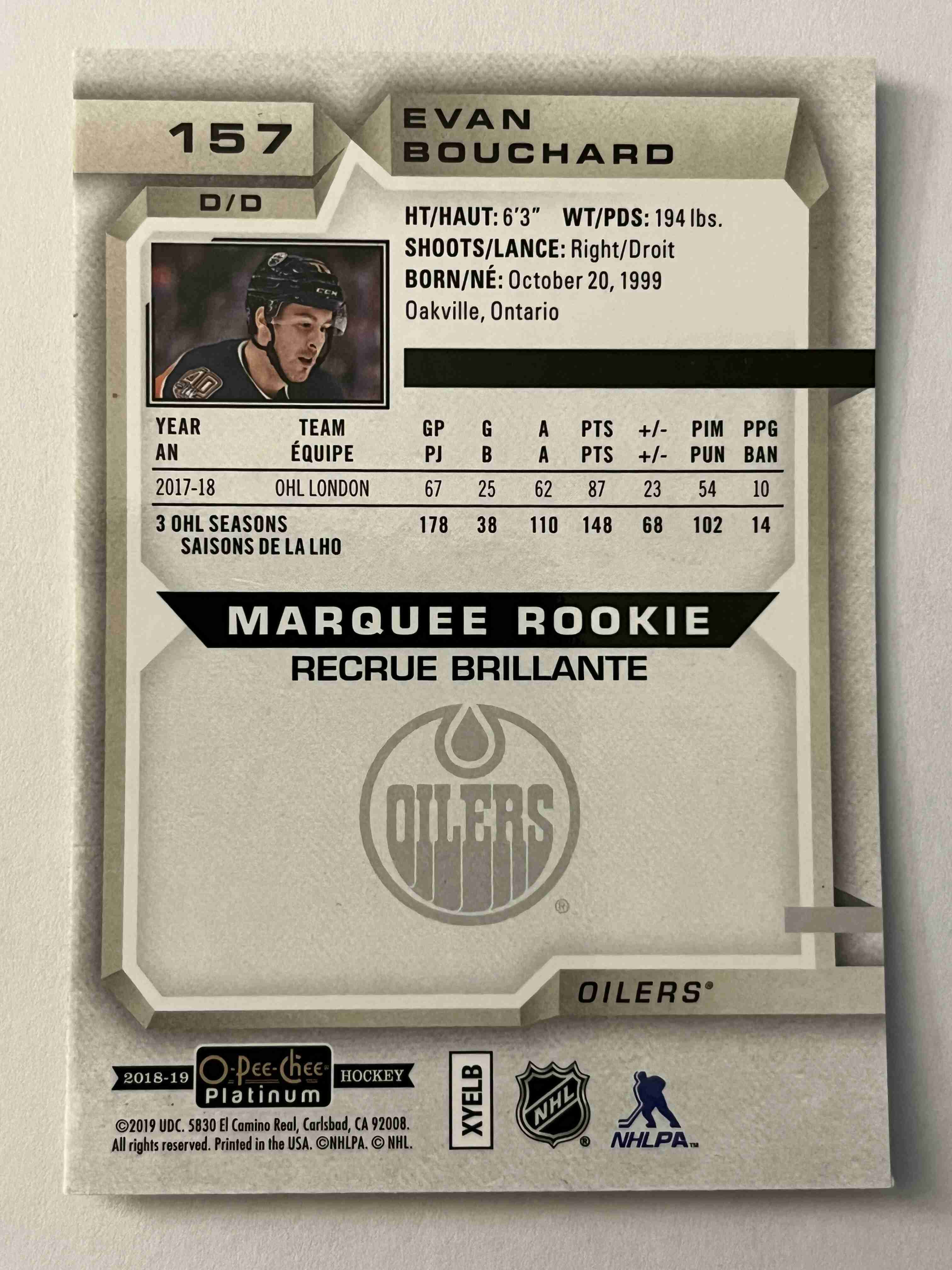 Evan Bouchard 2018-19 OPC Platinum Marquee Rookie RC #157