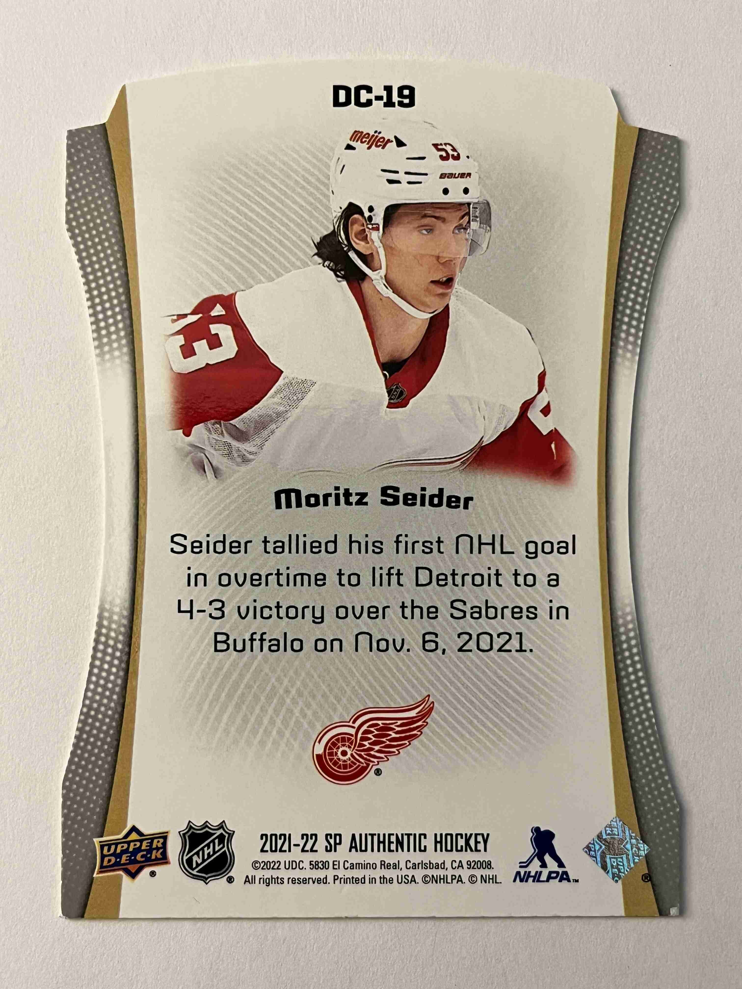 Moritz Seider 2021-22 SP Authentic Die-Cut RC #DC-19