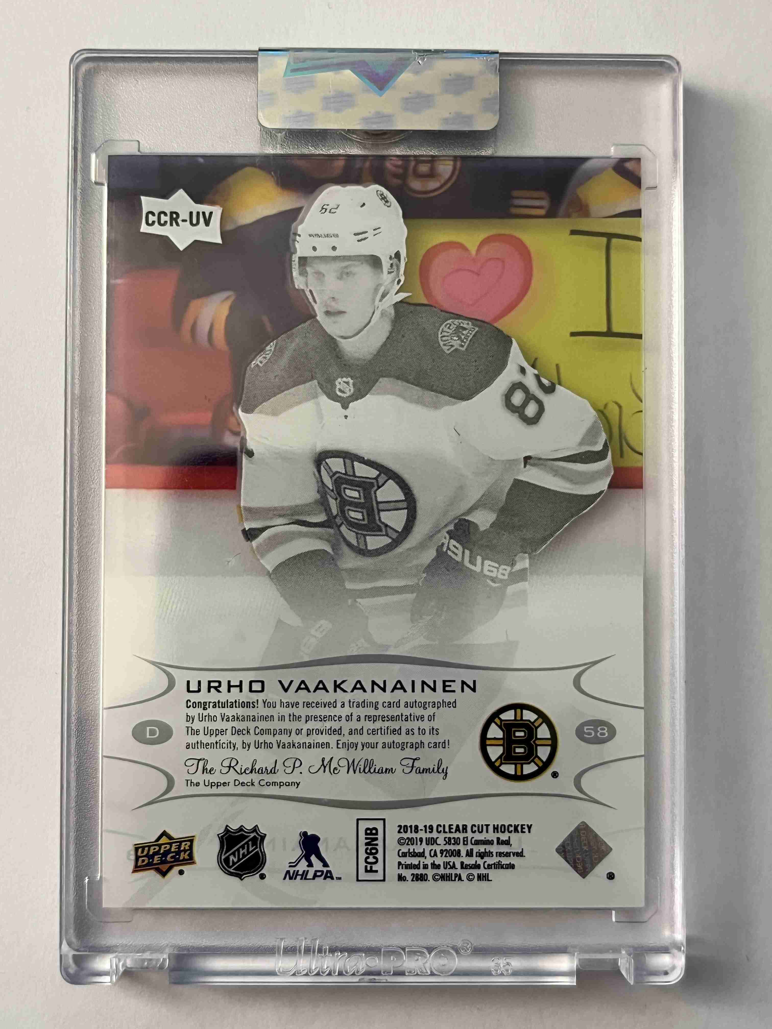 Urho Vaakanainen 2018-19 UD Clear Cut RC Autograph