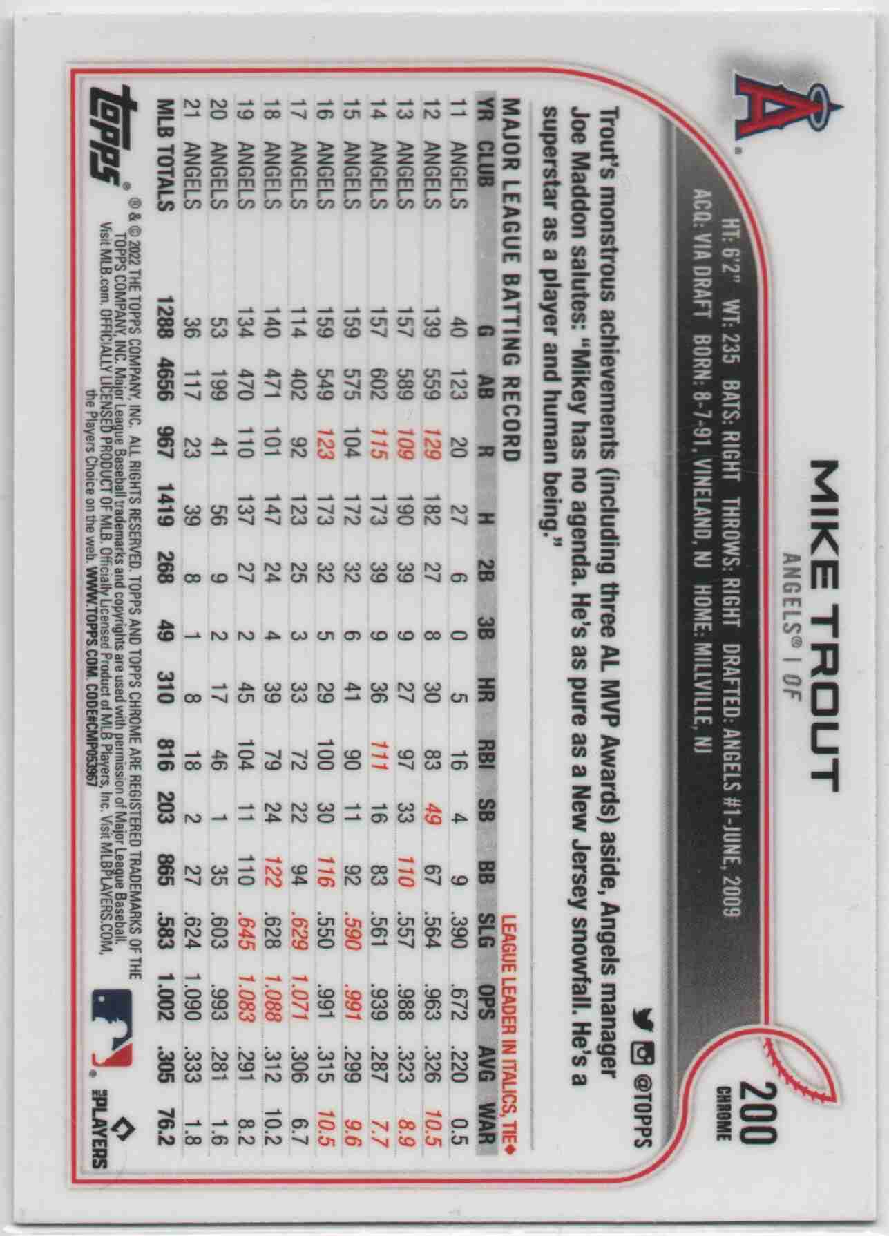 Mike Trout 2022 Topps Chrome #200 Sepia Refractor