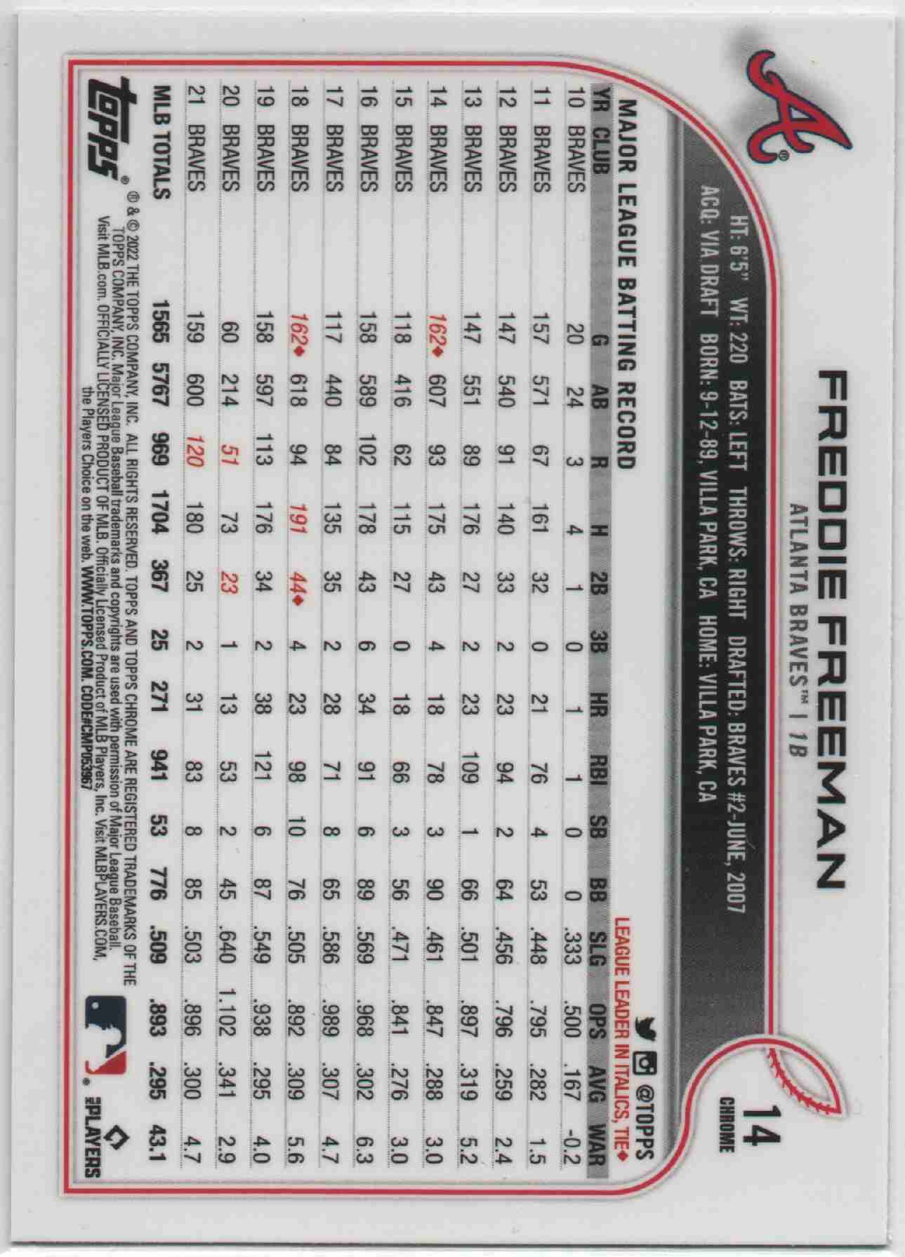 Freddie Freeman 2022 Topps Chrome #14 Xfractor