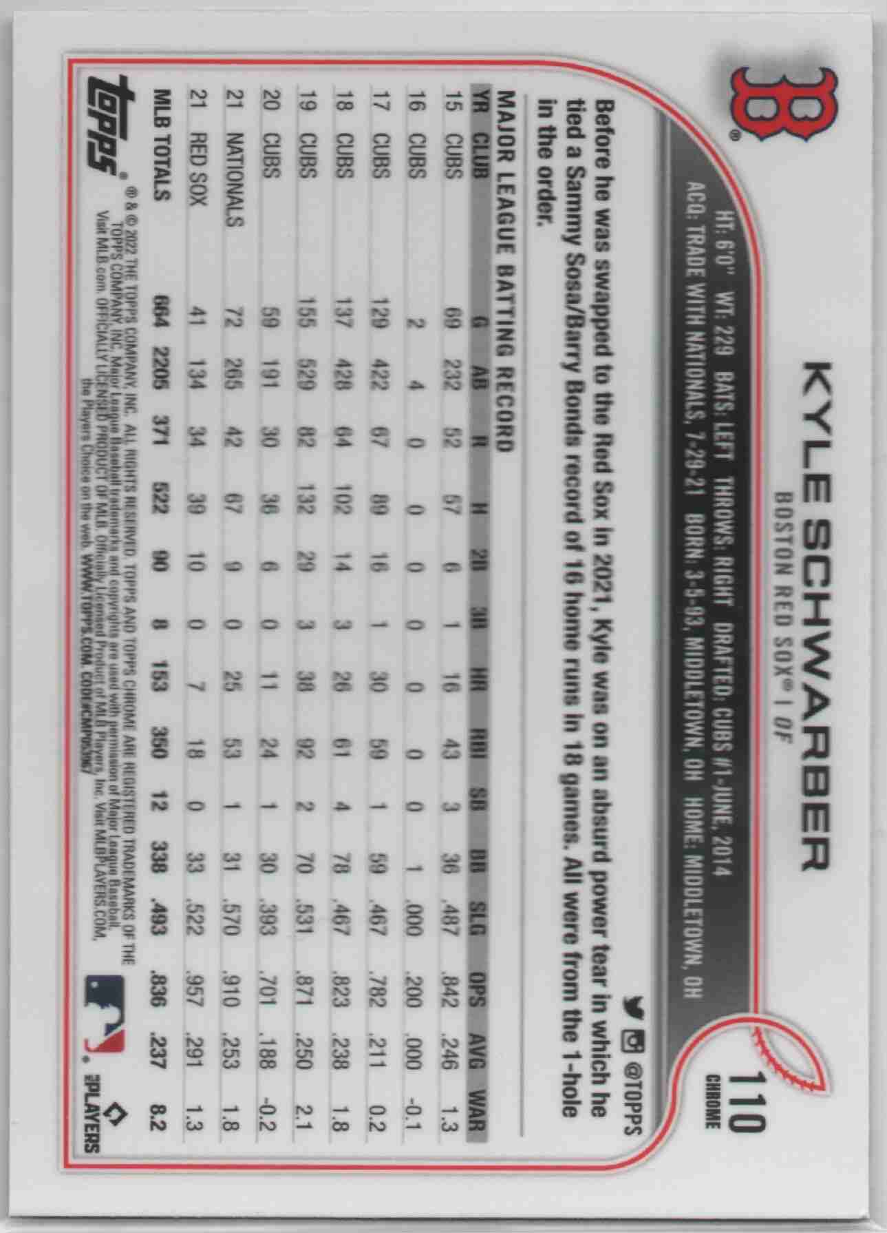 Kyle Schwarber 2022 Topps Chrome #110 Xfractor