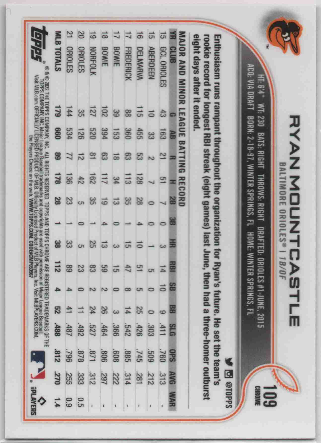 Ryan Mountcastle 2022 Topps Chrome Pink Refractor Rookie Cu