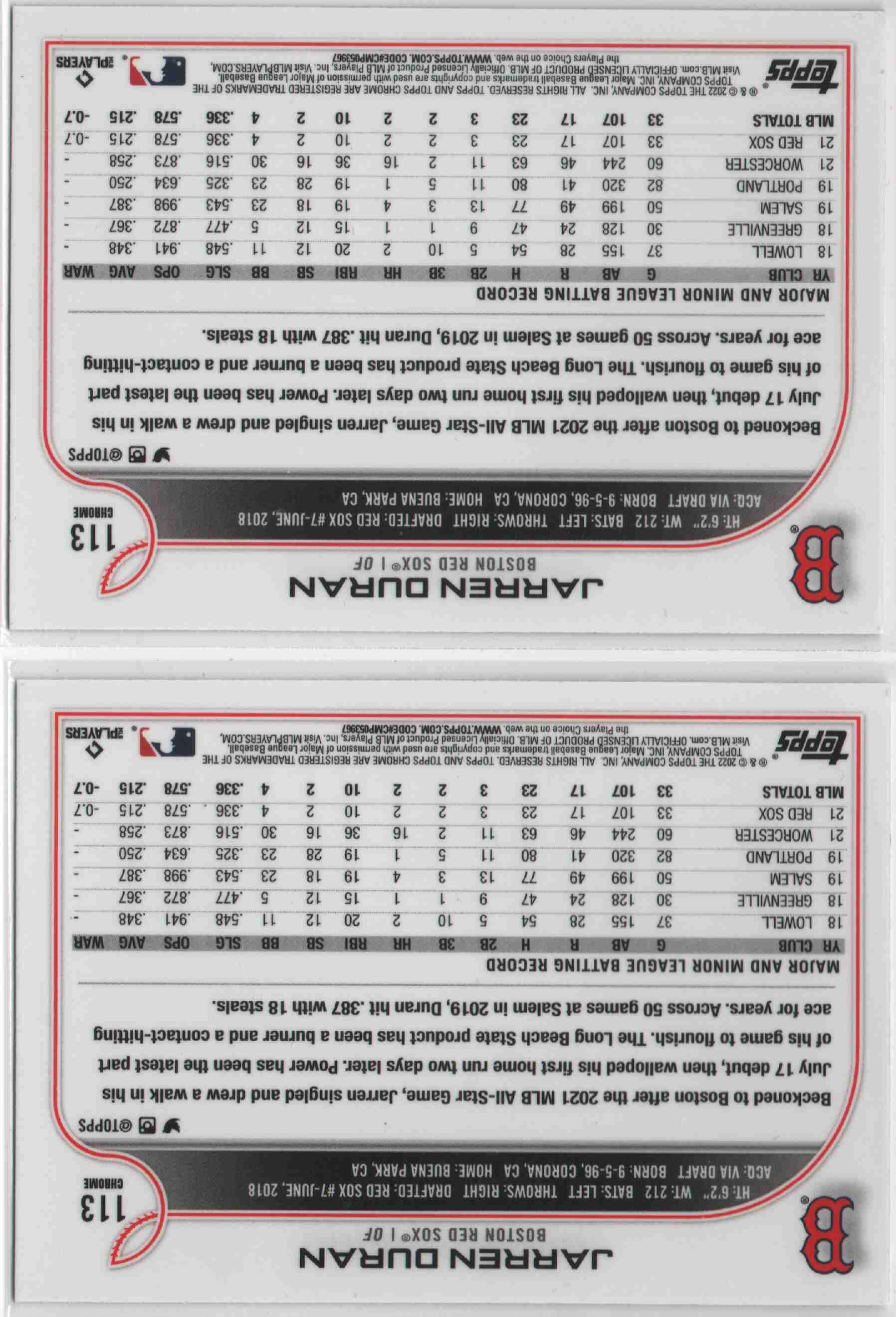Jarren Duran 2022 Topps Chrome Pink Ref + Rookie 2 Card Lot