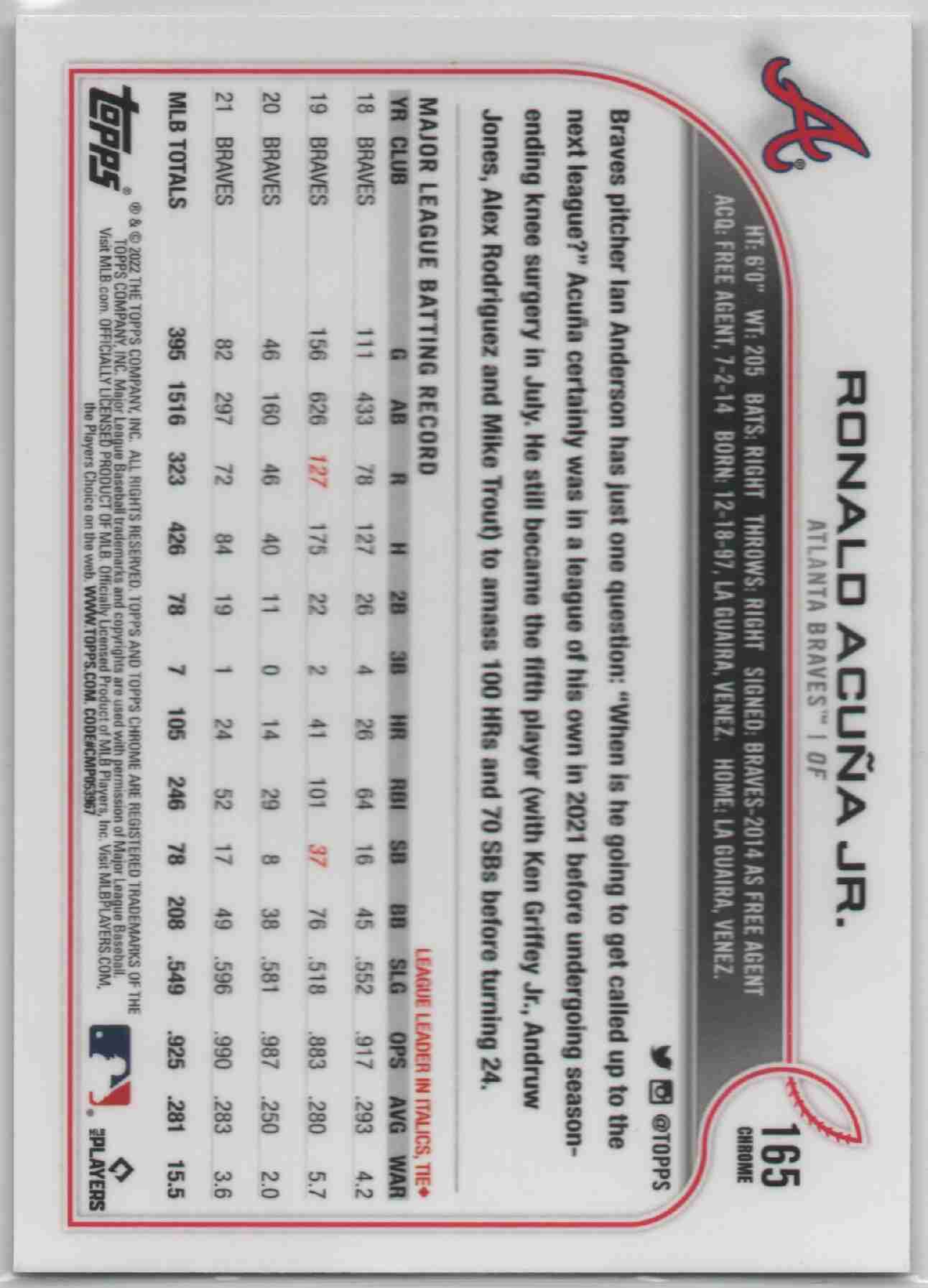 Ronald Acuna Jr 2022 Topps Chrome #165 Sepia Refractor