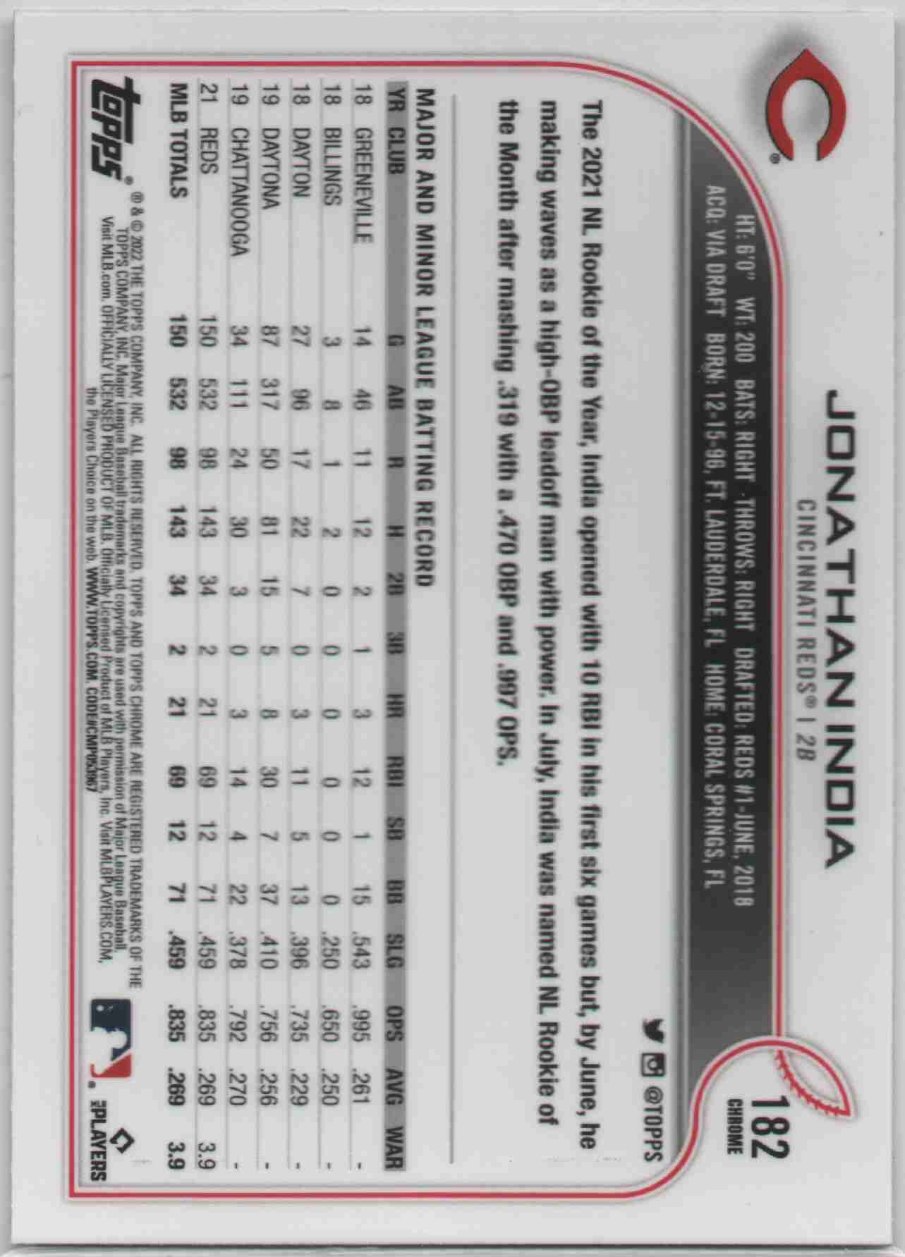 Jonathan India 2022 Topps Chrome Xfractor Rookie Cup