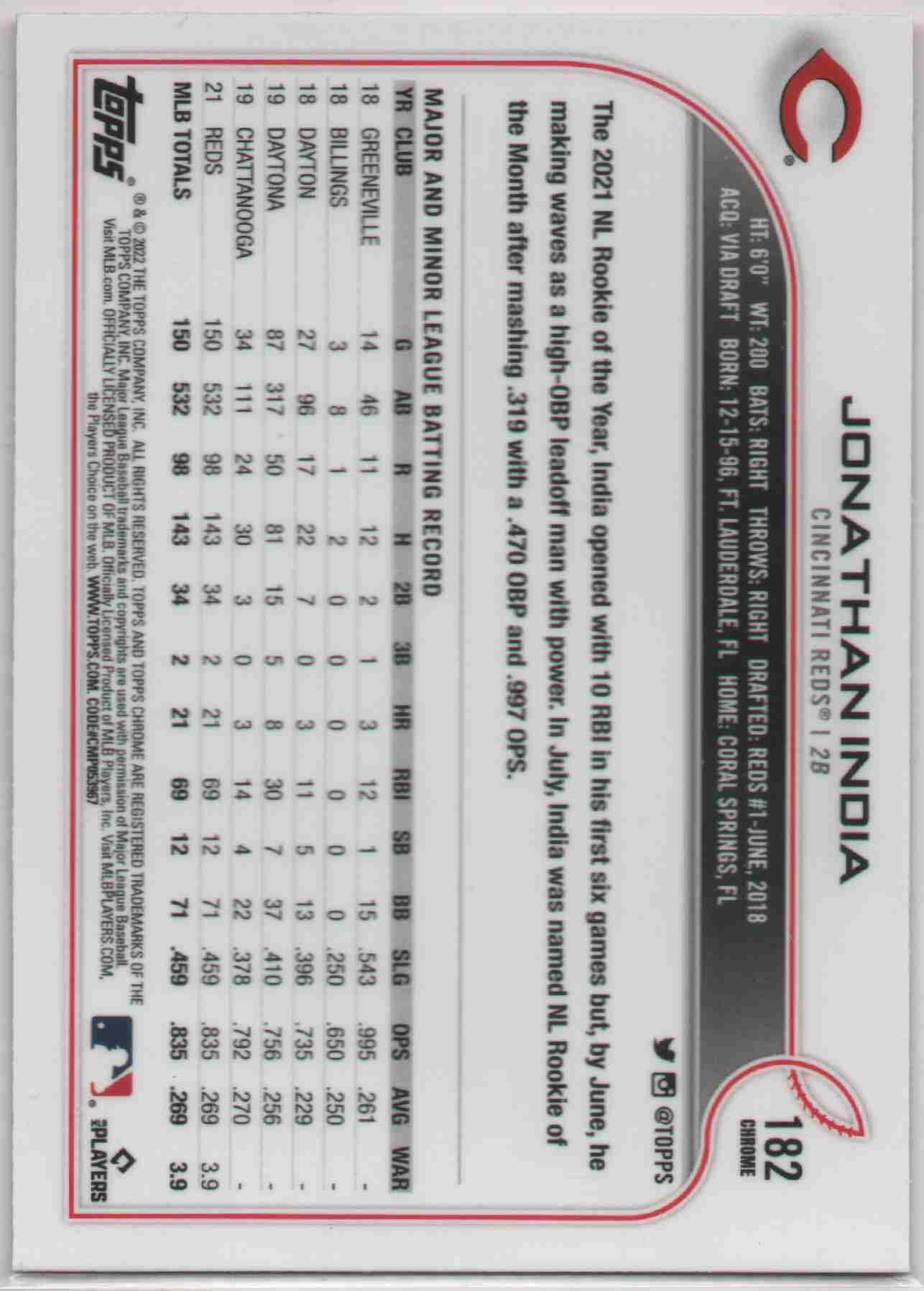Jonathan India 2022 Topps Chrome Pink Refractor Rookie Cup