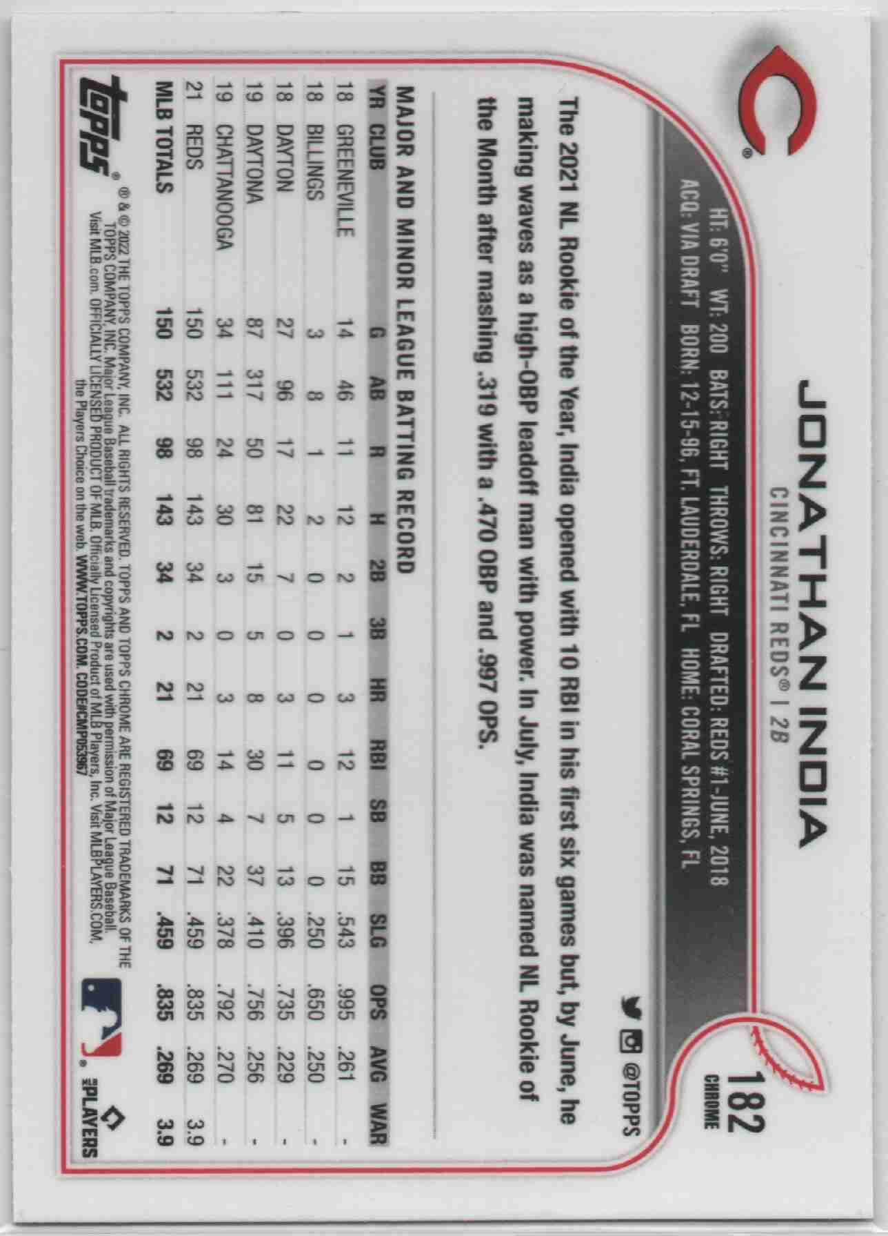 Jonathan India 2022 Topps Chrome Sepia Refractor Rookie Cup