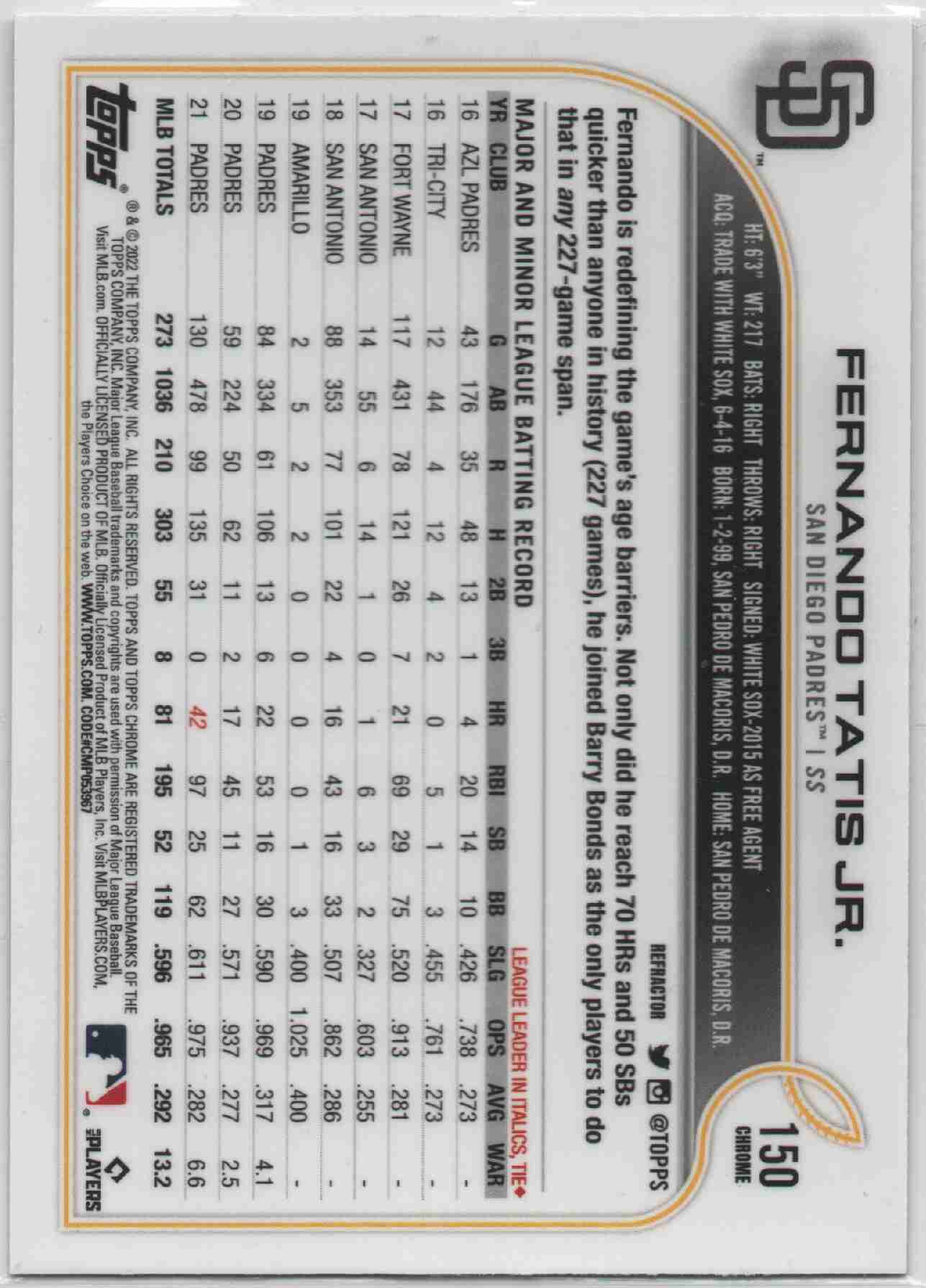 Fernando Tatis Jr 2022 Topps Chrome #150 Refractor