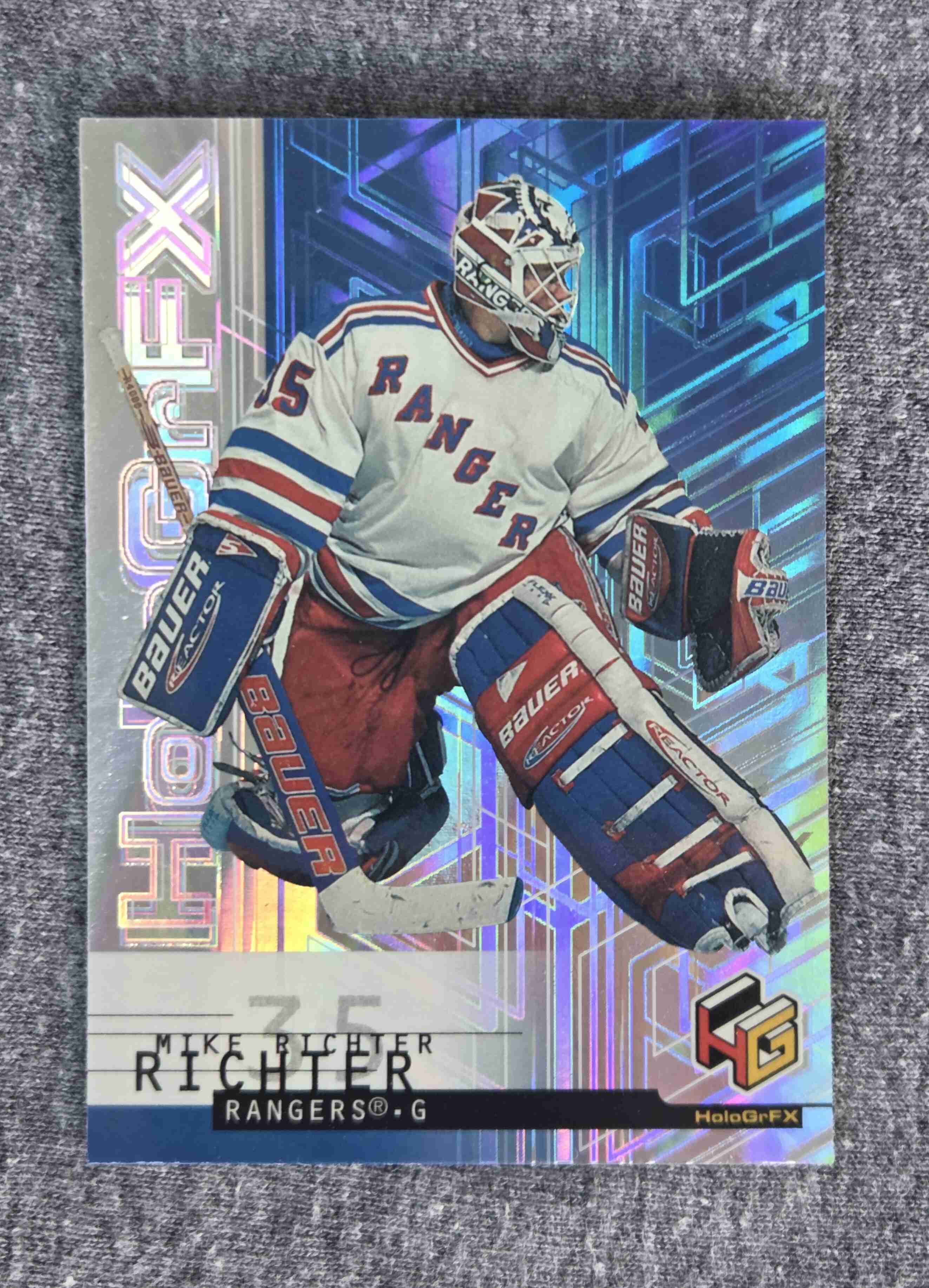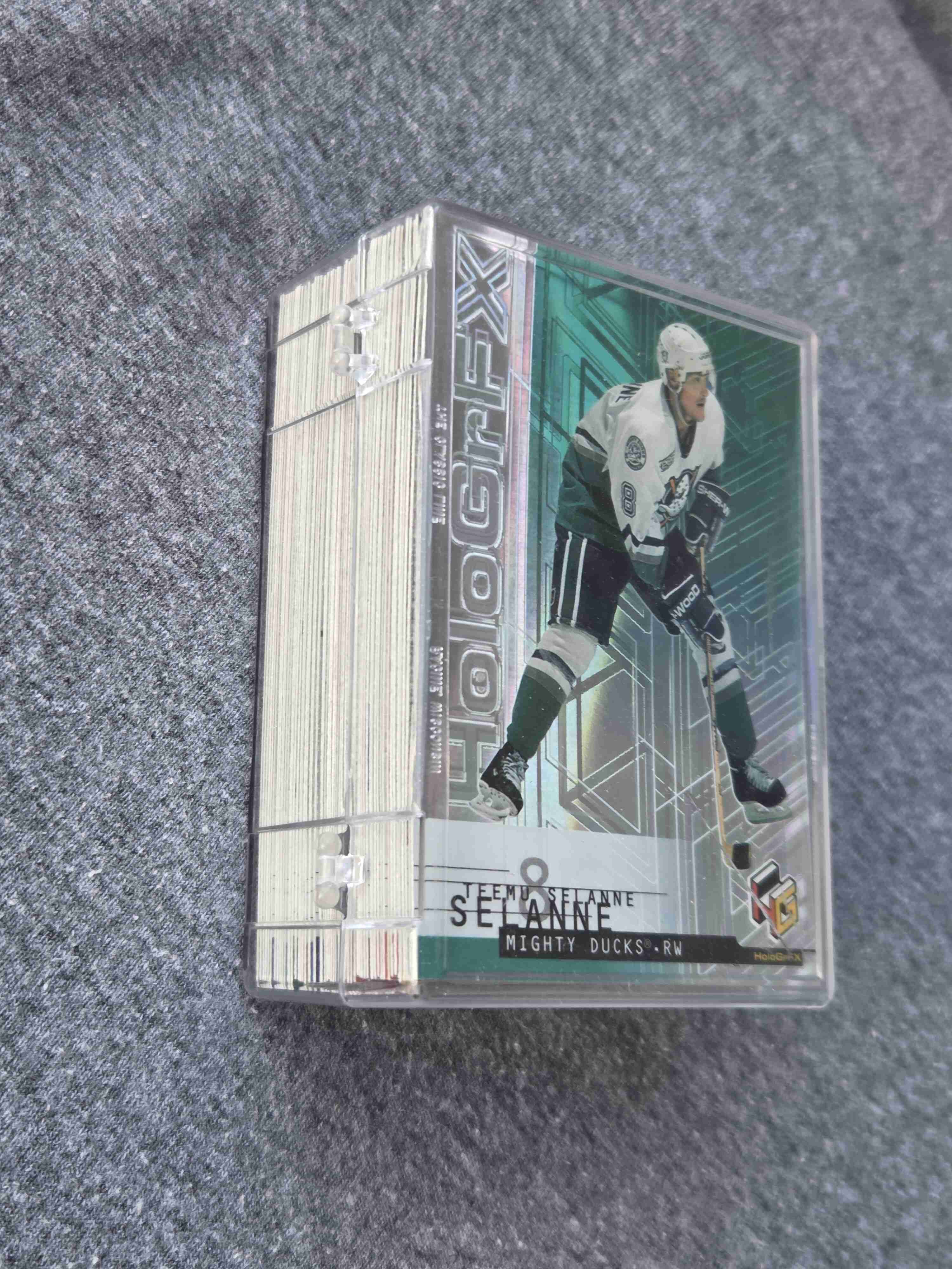 Time to thin out some sets from my collection! Keep watching Sportlots auctions as I’ll be putting sets up for bid each week – different sports, different years, different price points – in other words, something for everyone. ... Up for bids this week is the 1999-00 HoloGrFx set, made by Upper Deck (complete at 60 cards). ... over one-third of the players in this bright, colorful set are now in the Hockey Hall of Fame! ... All the big stars are here, including Roy, Hasek, Jagr, Yzerman, Bure, Selanne, Brodeur, Forsberg, etc. ... Quick and secure shipping (from USA) from a veteran Sportlots seller with 100% positive feedback. Good luck bidding!