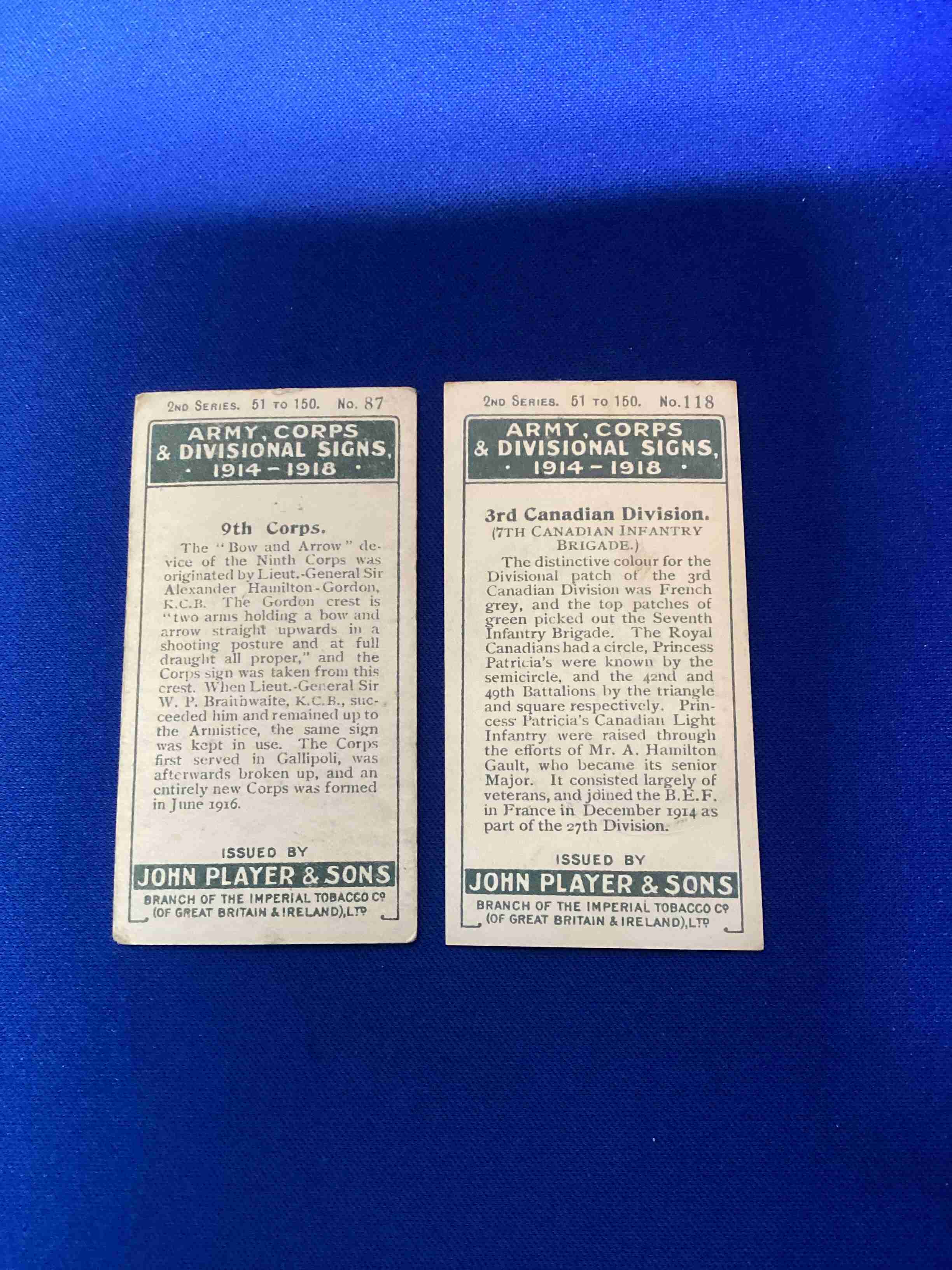 Lot of 2 1925 John Player Army Corps Divisional Signs