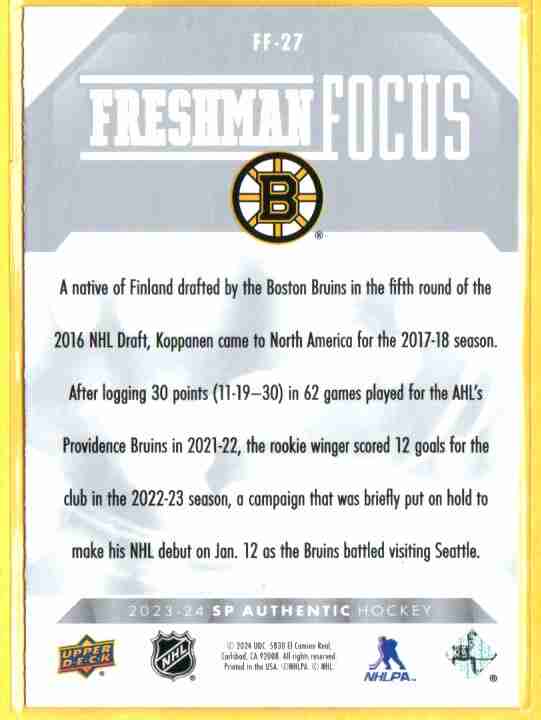 Joona Koppanen #FF-27 2023 SP Authentic Freshman Focus