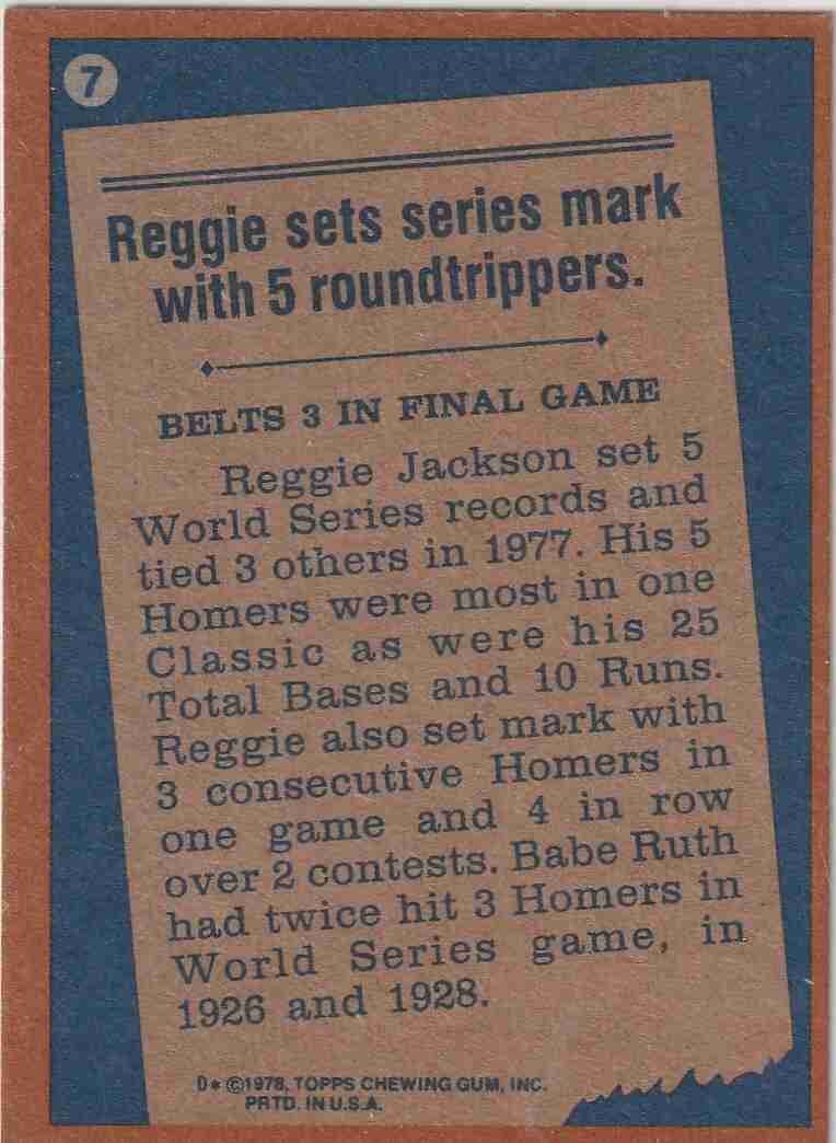 1978 Topps #7 '77 Record Holder Jackson Most Homers One WS