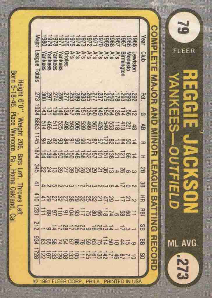 2-1981 Fleer #'s 79 650 Reggie Jackson Yankees