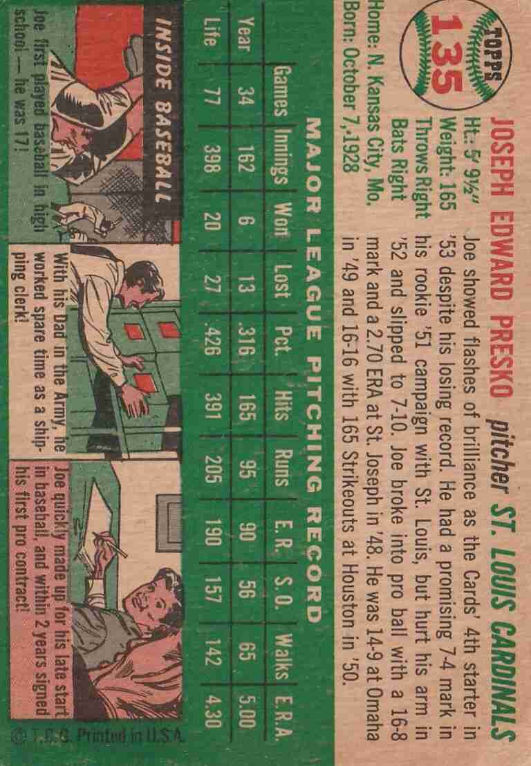 #2 Gus Zernial Philadelphia Athletics (EX) lower left corner crease #135 Joe Presko Cardinals (VG+) nstain upper vborder middle//couple minor blemishes