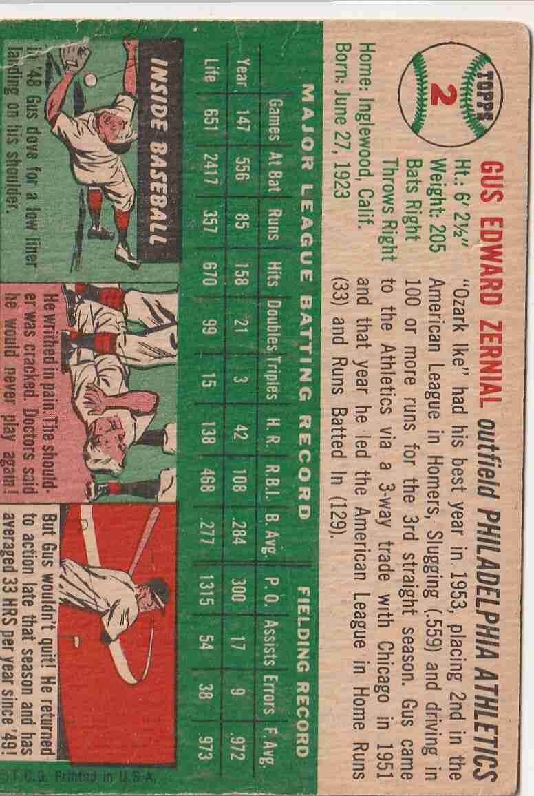 2-1954 Topps #'s 2 Zernial # 135 Presko