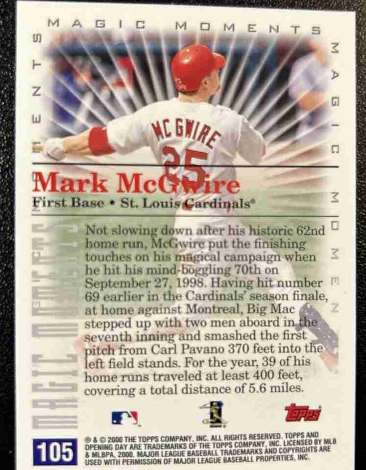 2000 Topps Mark McGwire #105- Magic Moments 70th Home Run