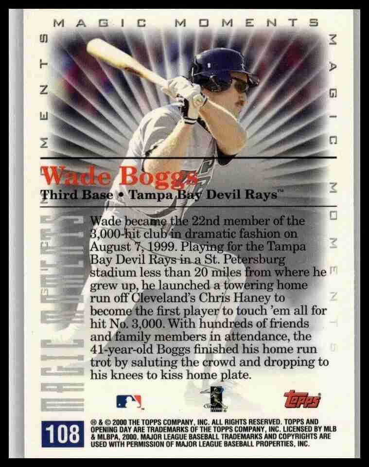 2000 Topps Opening Day #108 Wade Boggs MM 3000th Hit