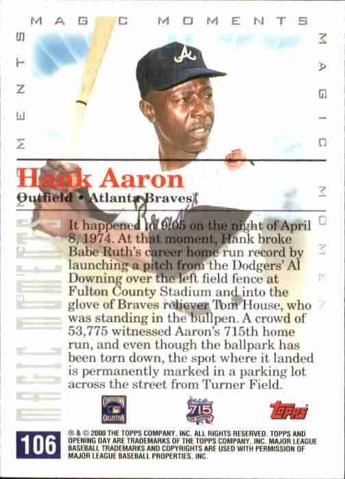 Hank Aaron 2000 Topps Opening Day Baseball 715th Home Run Atlanta Braves #106